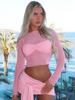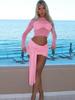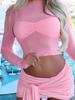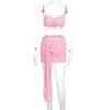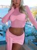 Ropa de Mujer de Comercio Exterior Transfronterizo Europeo y Americano 2025 Nuevo Top Camisola de Malla Transparente Sexy Falda Bodycon Fruncida Conjunto de Tres Piezas