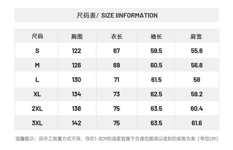 S, M, L, XL, 2XL, 3XL