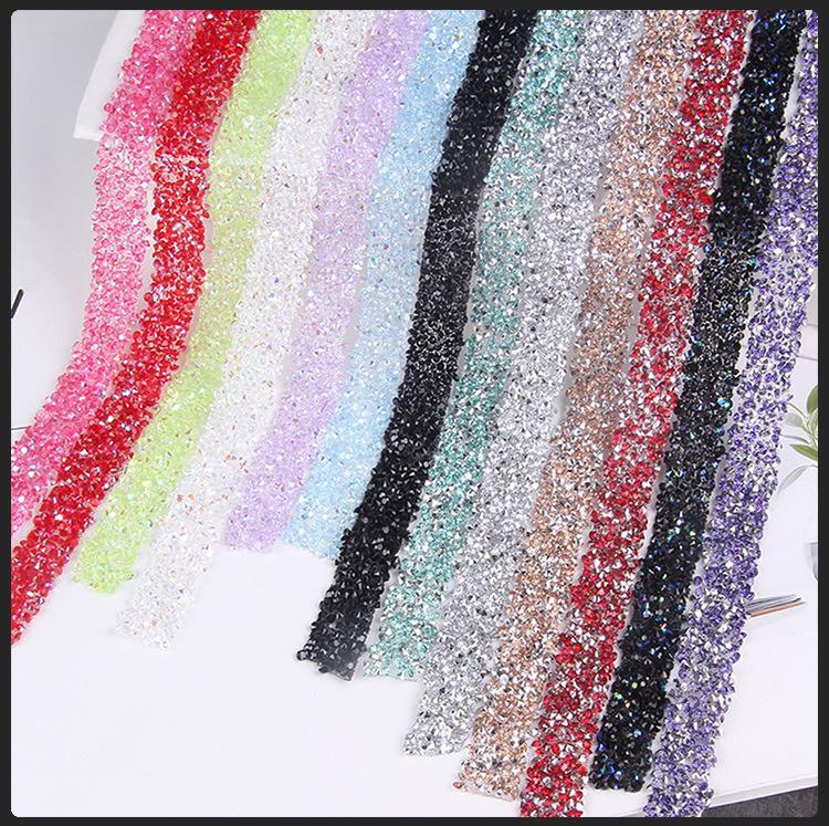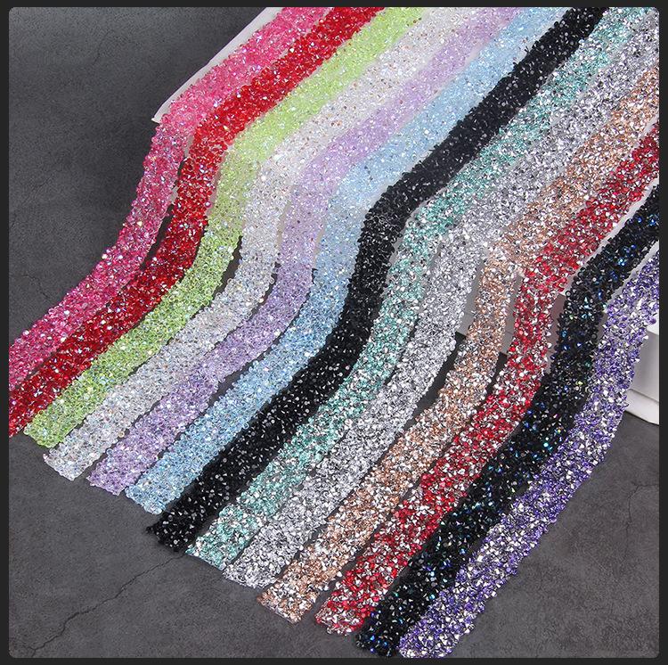 Cinta de Pedrería de 1.2 cm de Ancho Adhesivo de Doble Cara Respaldo Termofusible Tiras Hotfix de Pedrería Zapato Bolso Pedrería de Cristal Ropa de Pedrería