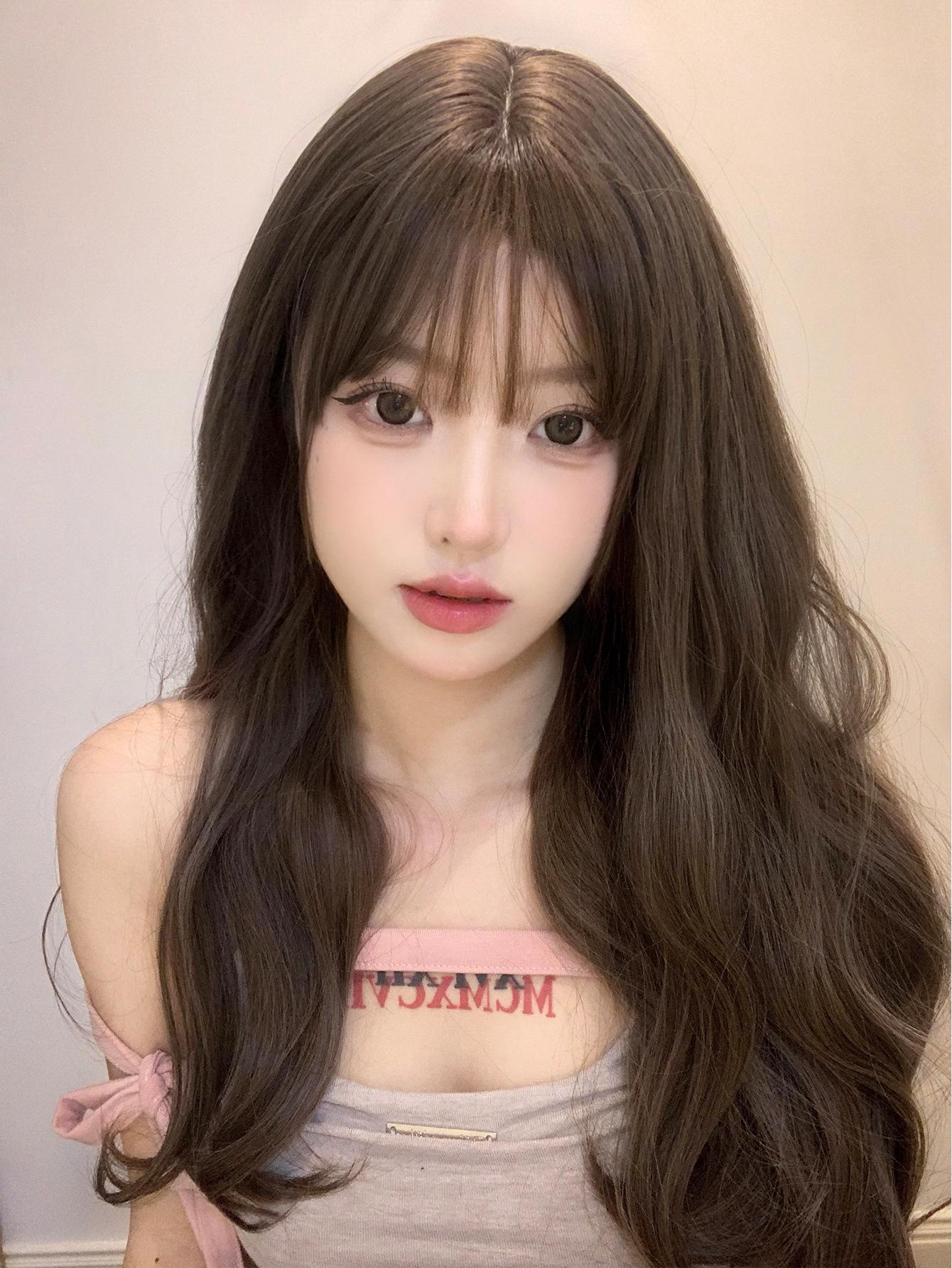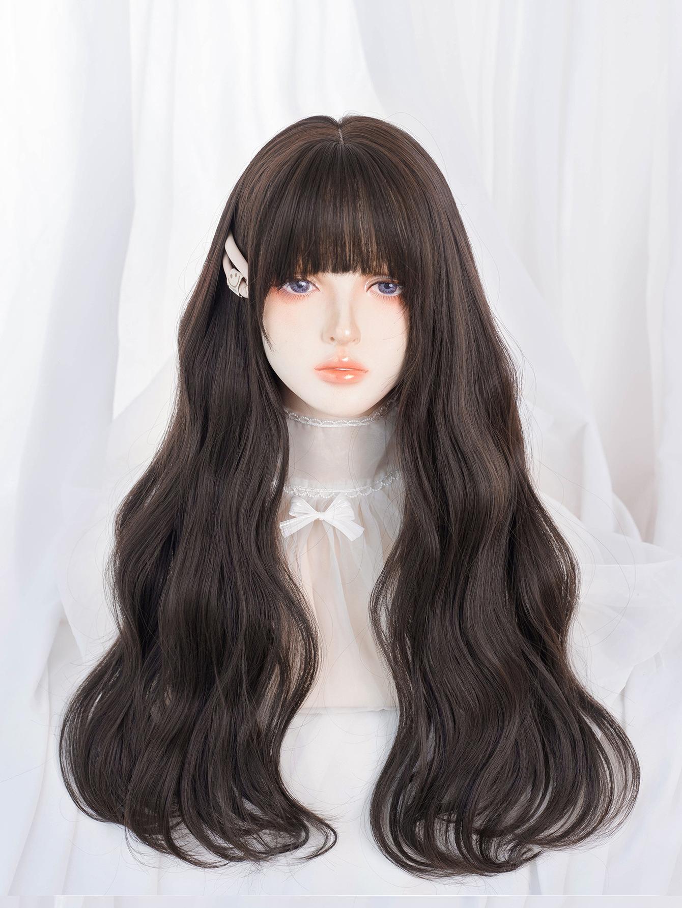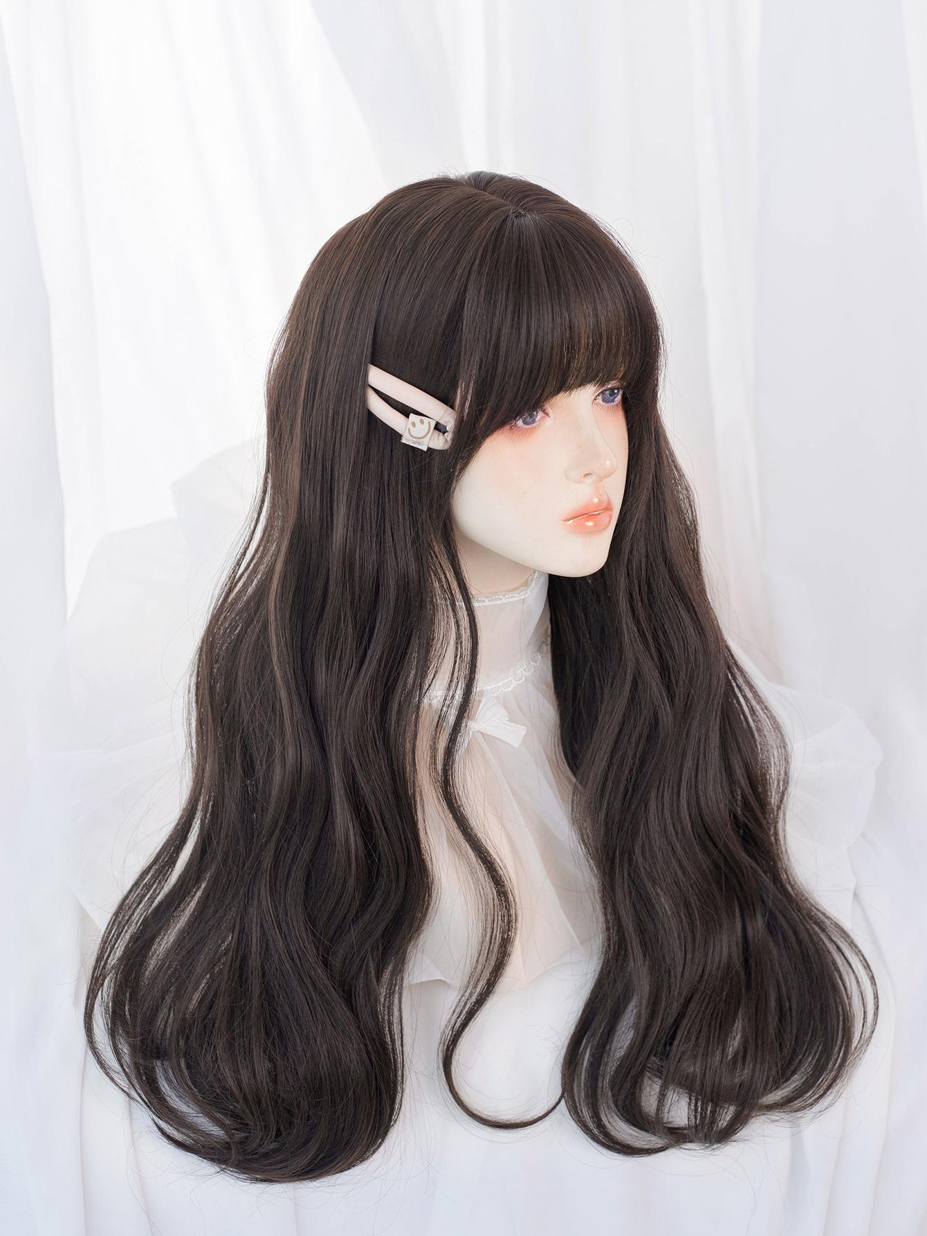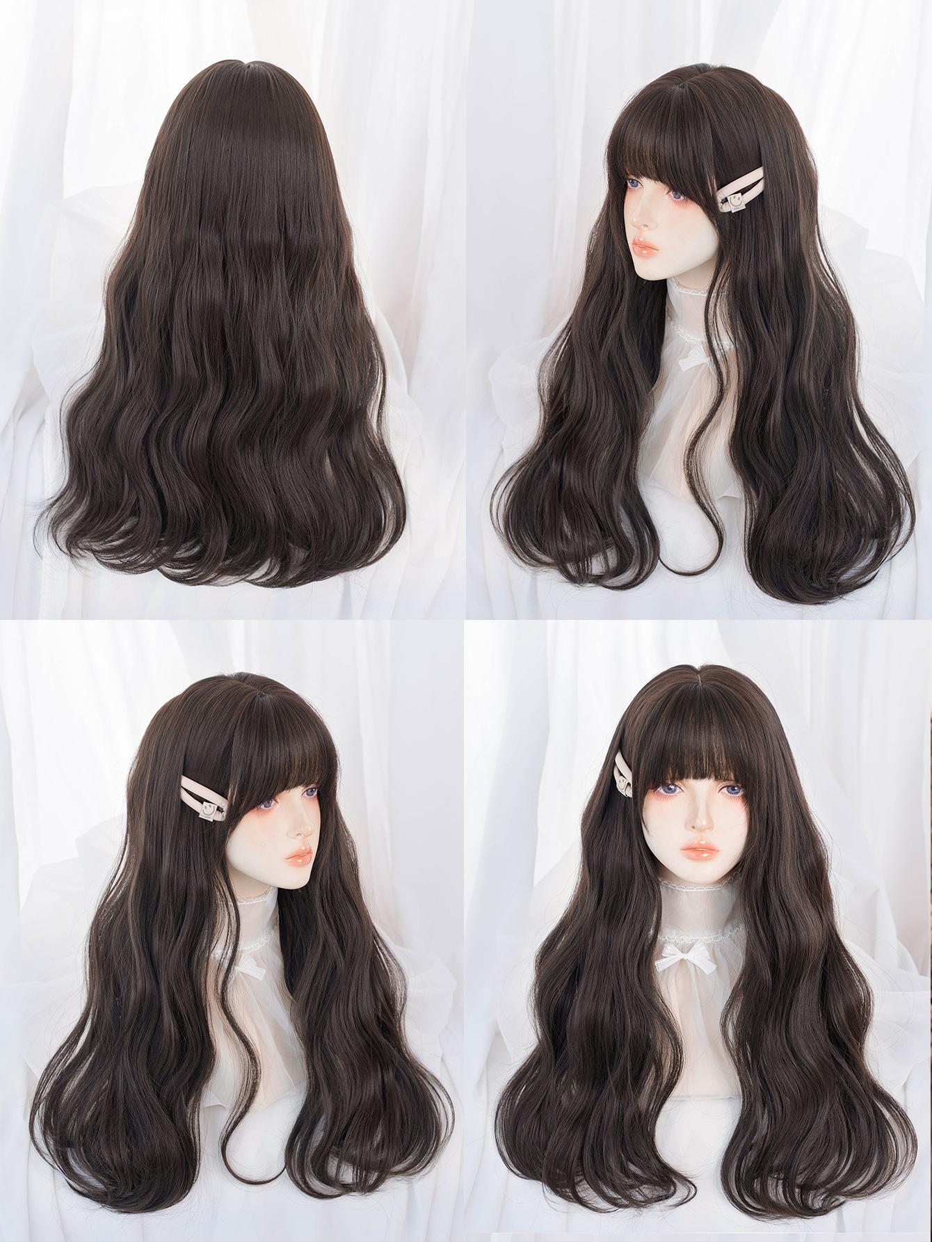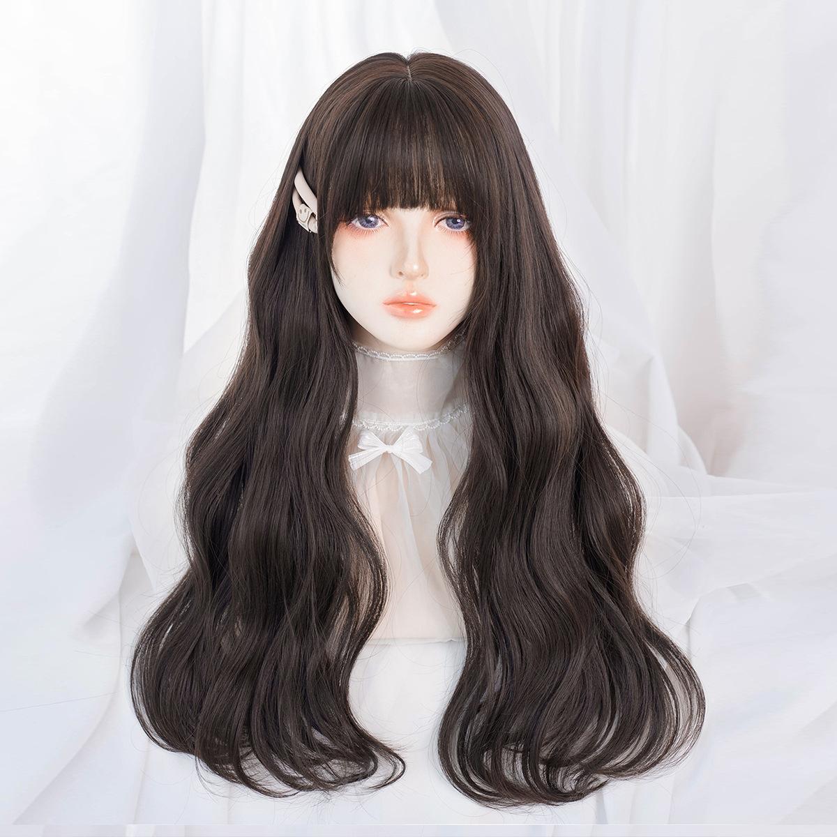 Peluca de mujer de cabello largo, con ondas grandes, estilo lolita, con flequillo natural y cubierta completa para la cabeza, venta al por mayor transfronteriza