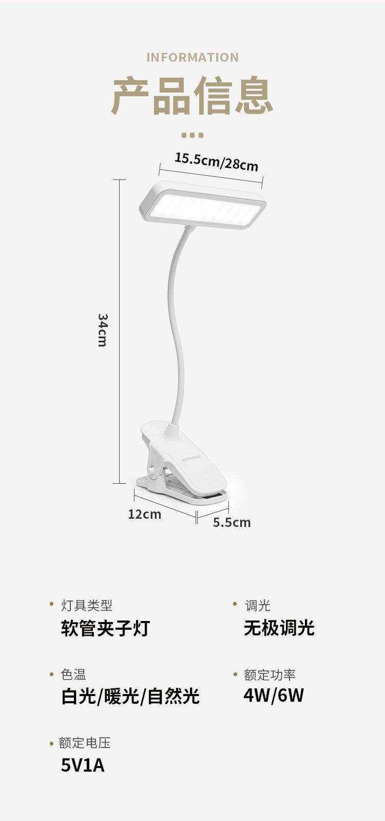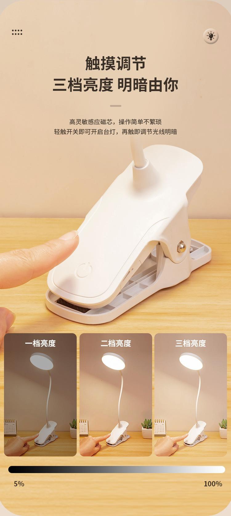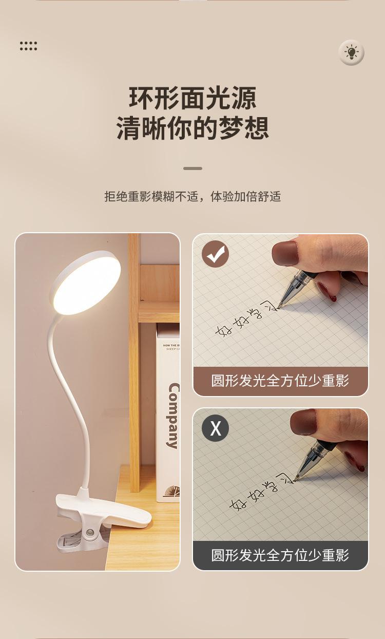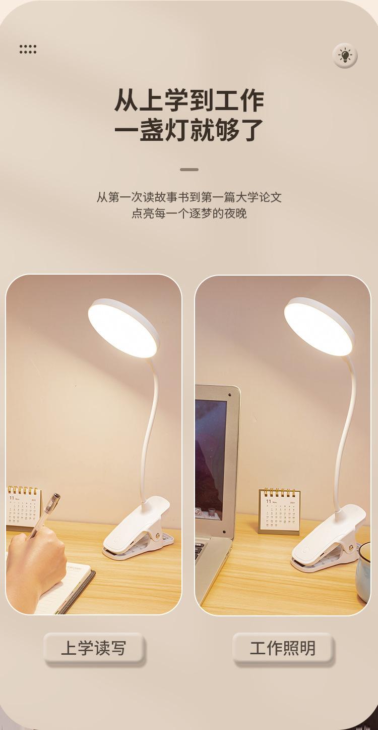 Lámpara de Escritorio con Clip para Protección Ocular Específica para el Estudio Luz Nocturna Dormitorio Carga Lámpara de Lectura de Noche LED Regalos para Estudiantes Transfronterizos