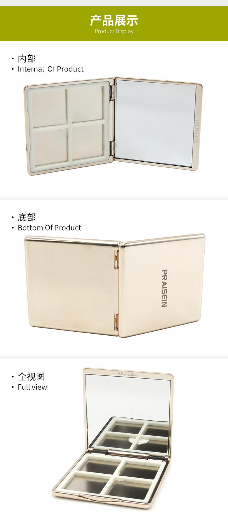 Caja de sombras de ojos cuadradas de 4 colores, material de embalaje de placa vacía, caja de sombras de ojos con hebilla dorada, caja de cosméticos de plástico con logotipo