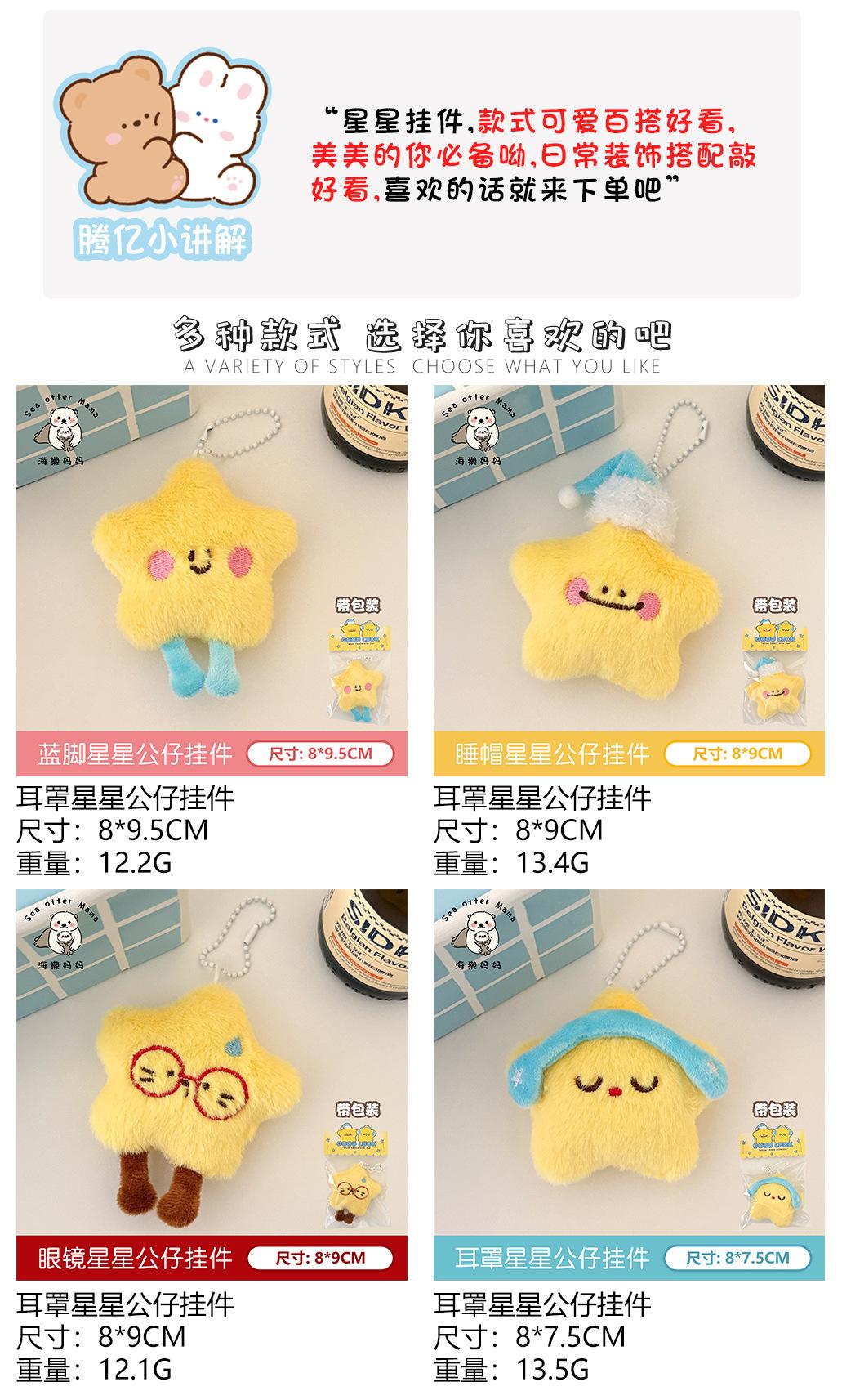 1# Earmuff Star Plush Pendant, 2# Glasses Star Plush Pendant, 3# Nightcap Star Doll Pendant, 4#Blue-footed Sta...