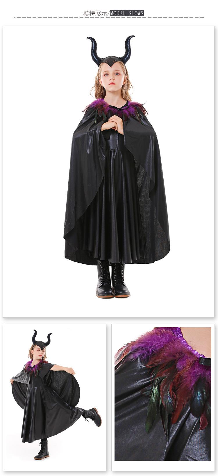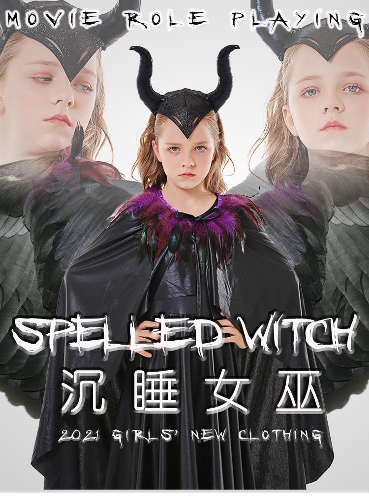 Disfraz de Fiesta de Halloween Cosplay Personaje de Película Europeo y Americano Madeleon Reina Demonio Negro Dormida Disfraz de Niña