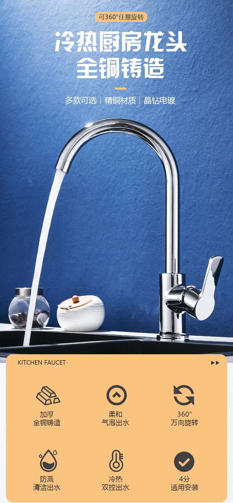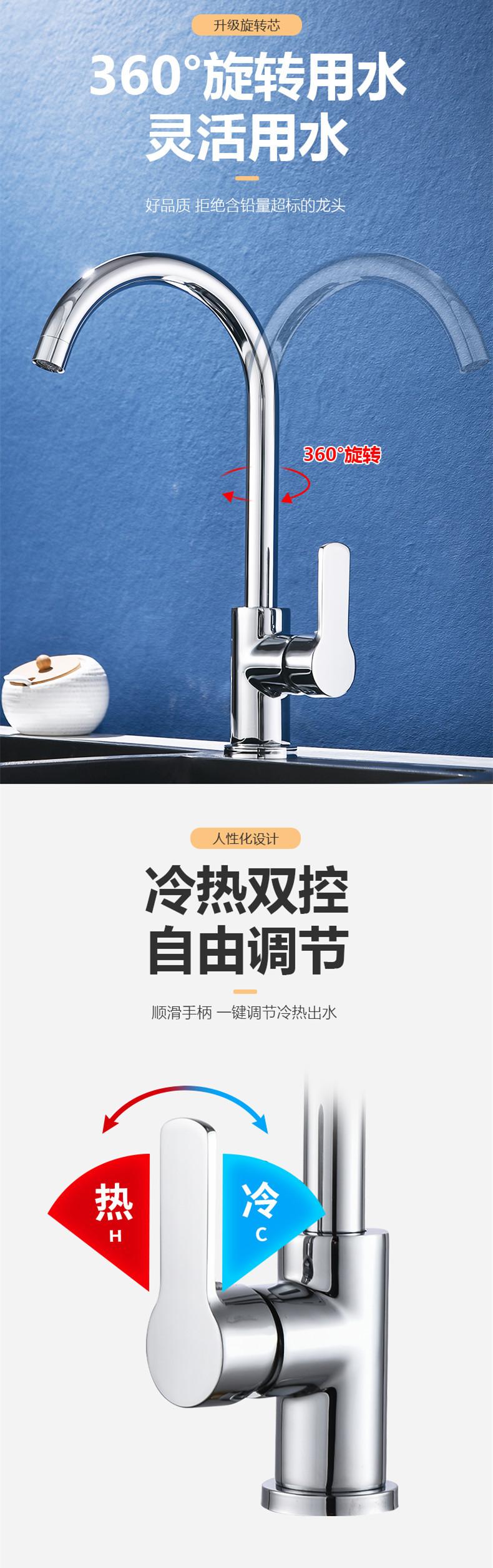 Grifo de Cocina Todo Cobre Doméstico Caliente y Frío Acero Inoxidable Frío Único Doble Uso Antisalpicaduras Giratorio Fregadero Lavabo para Platos