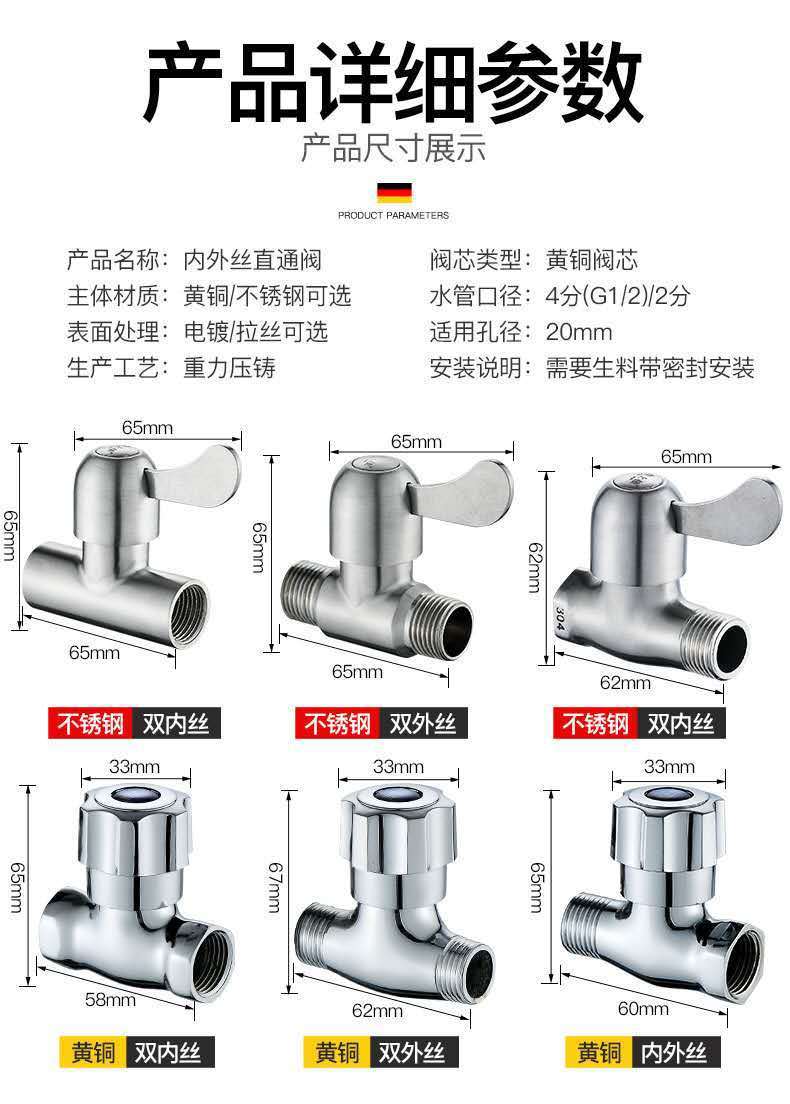 Válvula de Ángulo de Paso Recto de Cobre Interruptor Válvula Recta de 4 Puntos Acero Inoxidable 304 Válvula de Grifo de Rosca Externa Giratoria Rosca Interna y Externa Venta al por Mayor