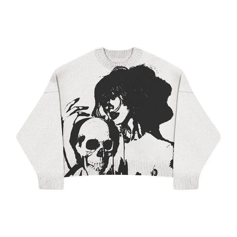 Nuevo Otoño/Invierno Moda Europea Suéter Jersey de Cuello Redondo Tejido de Punto Estampado Manga Larga Top Suelto Poliéster Manga Regular