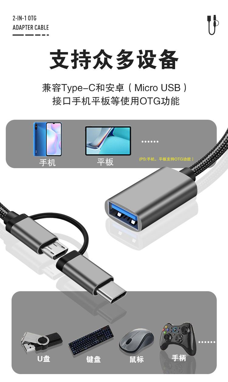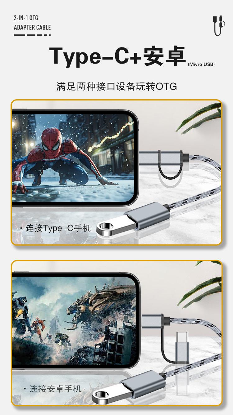 Android type-c 2-in-1 [pure black braided wire] bare wire, Android type-c 2-in-1 [pure silver braided wire] ba...