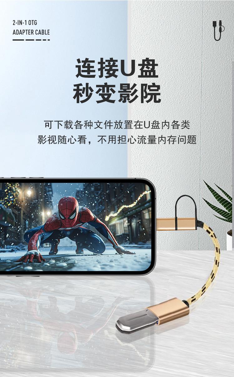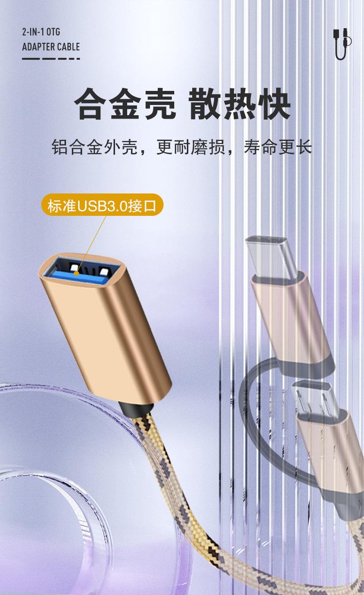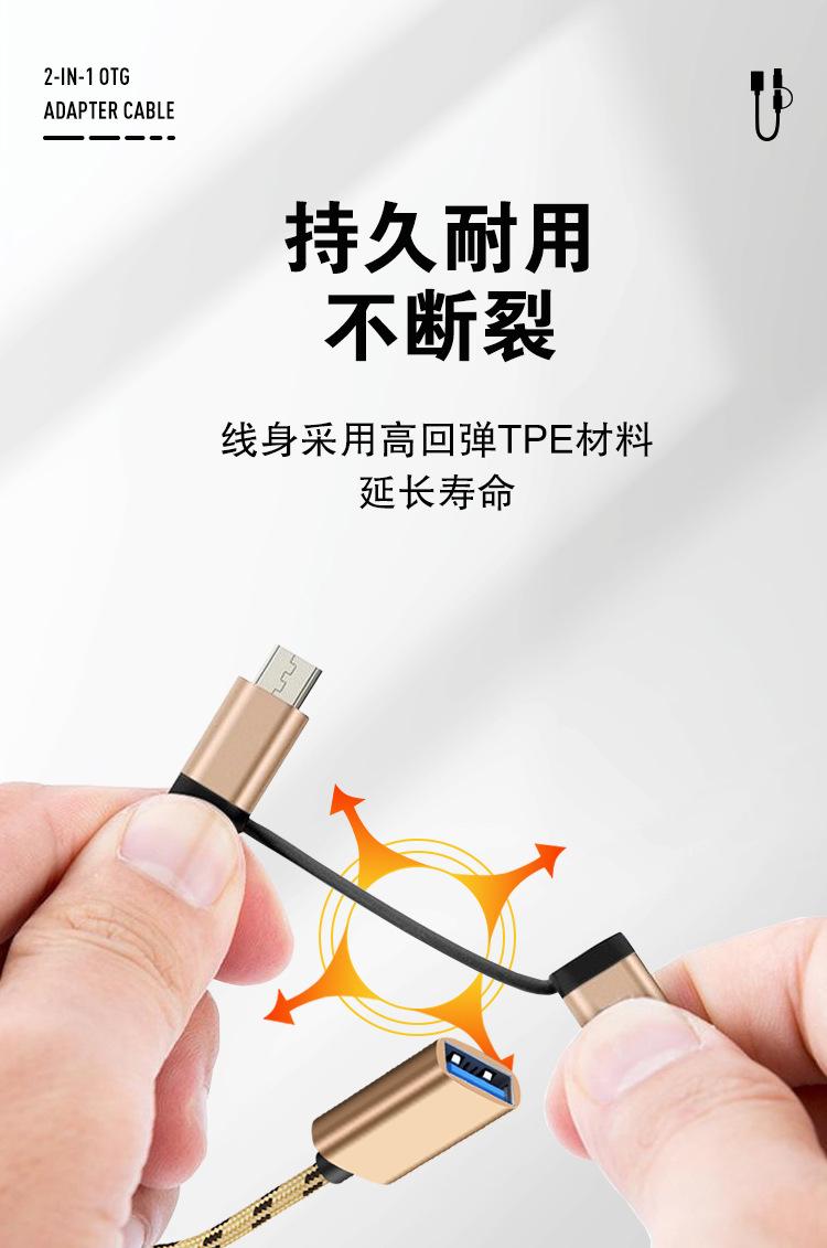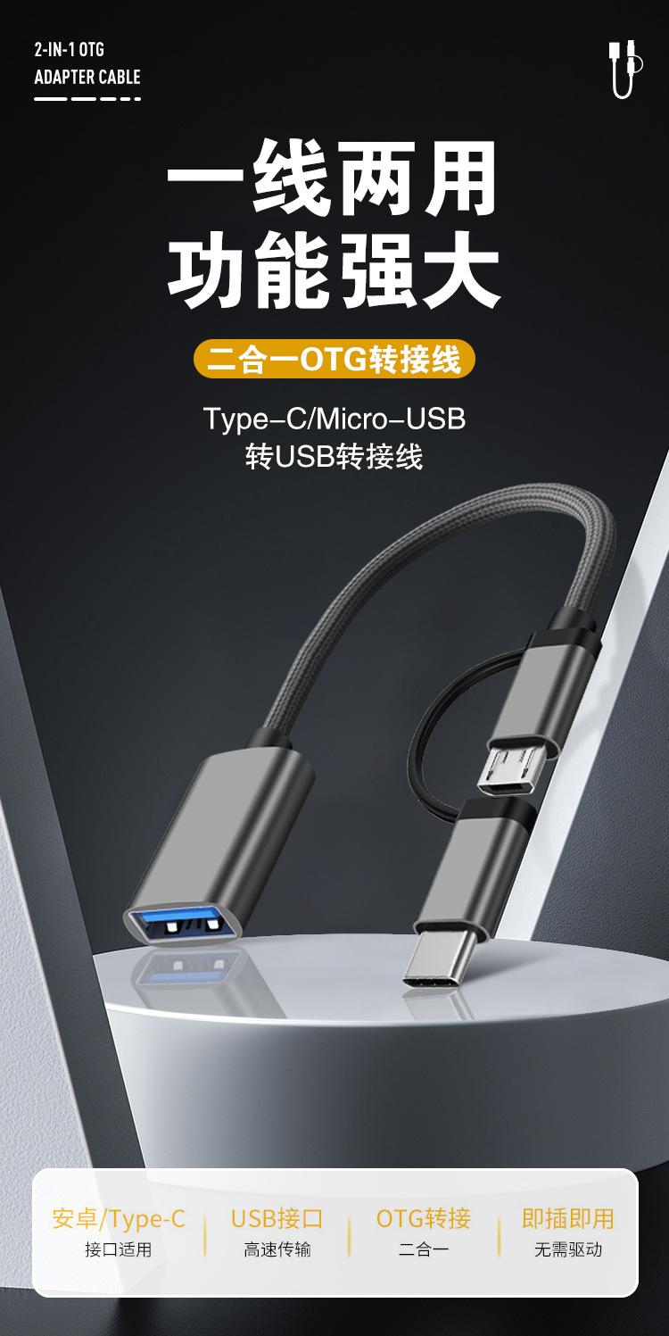 Adaptador OTG tipo C a USB, convertidor de carga de teléfono móvil, cable de datos, adaptador dos en uno