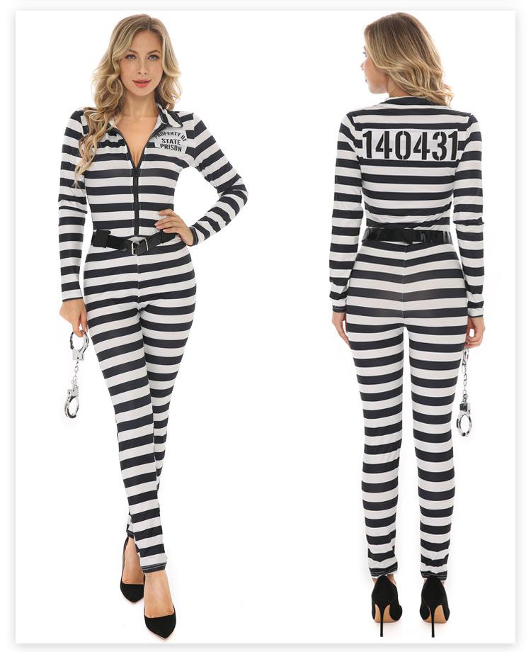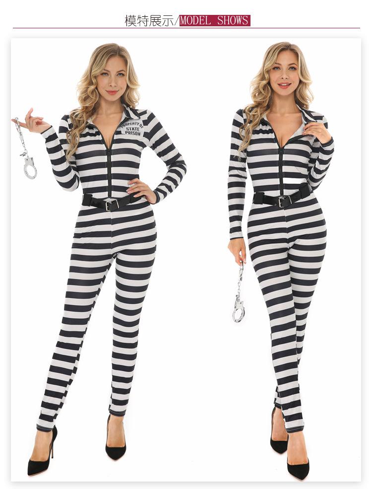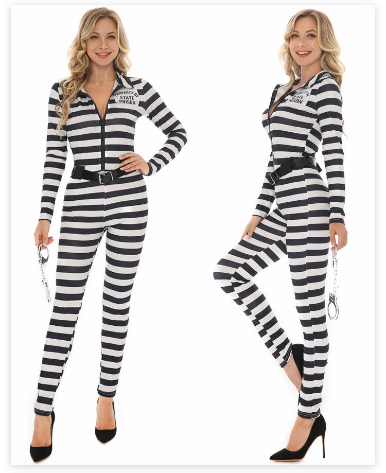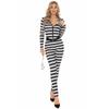 Disfraz de Cosplay de Escena de Halloween Ropa de Diablo para Adulto Mujer Rayas Blancas y Negras Sexy Prisionera de una Pieza