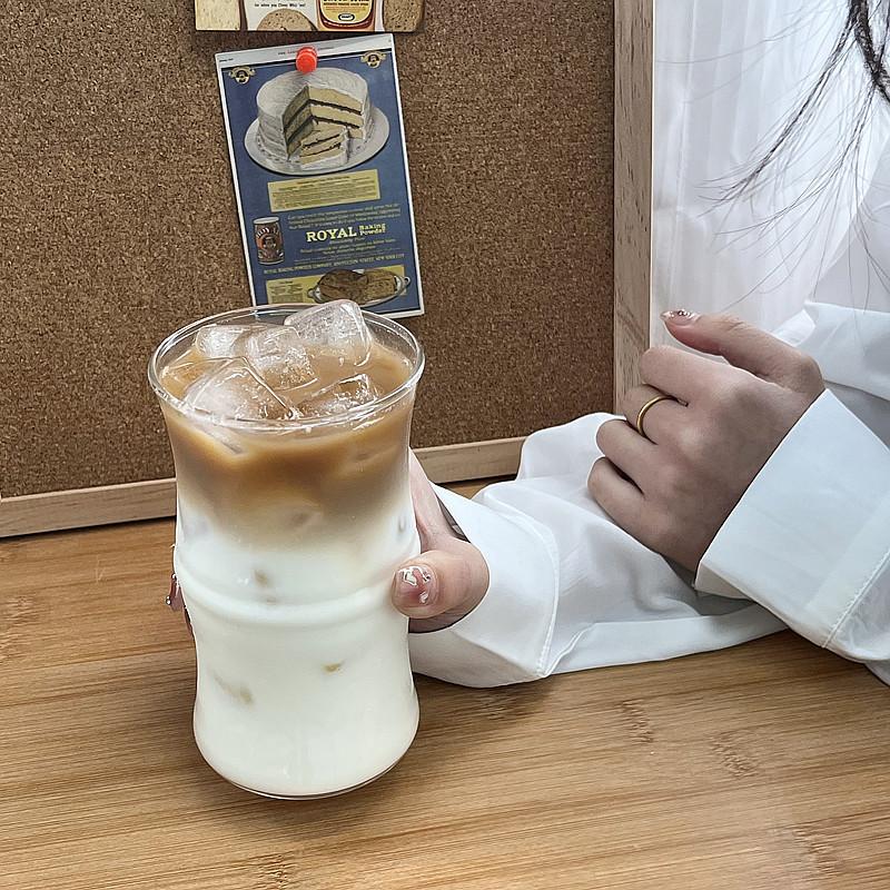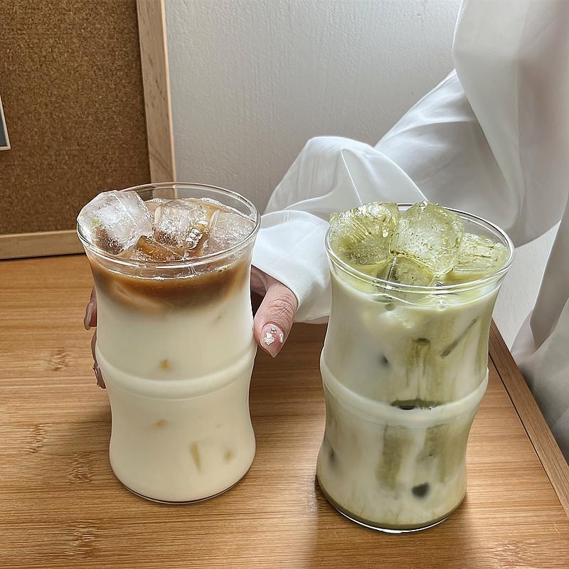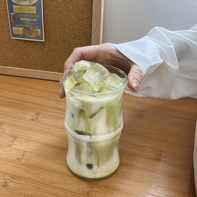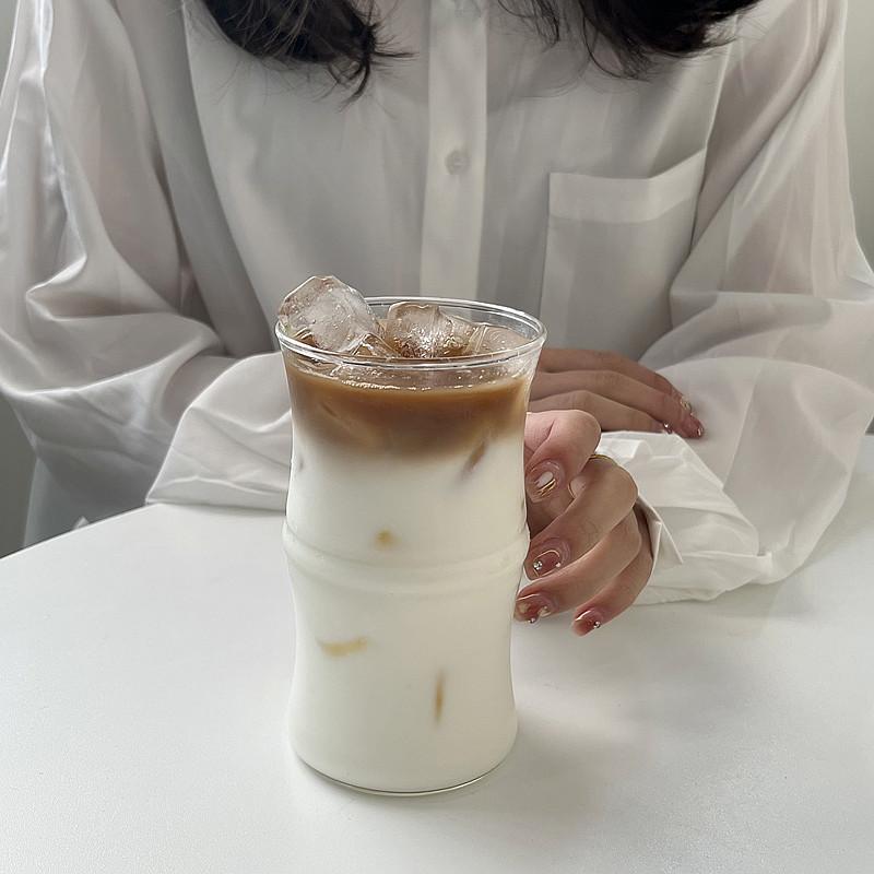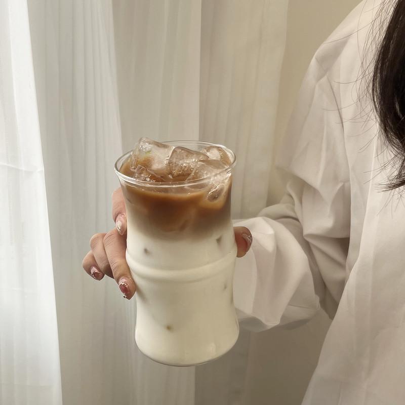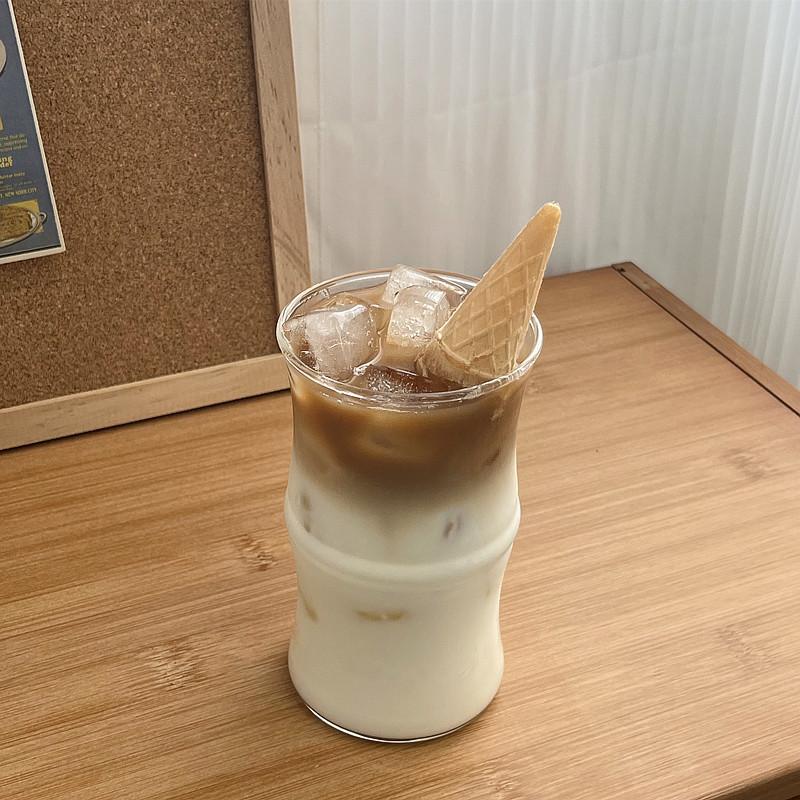 Vaso de café de bambú de vidrio borosilicato, taza de agua de estilo ins simple resistente al calor, taza de leche, taza para beber jugo