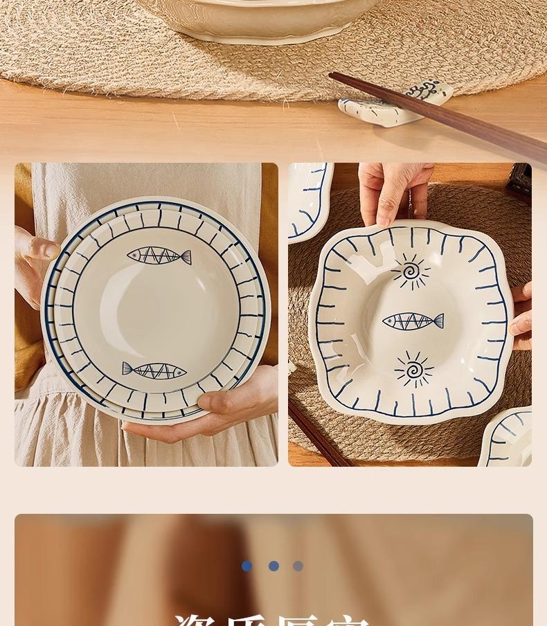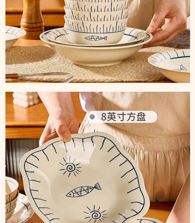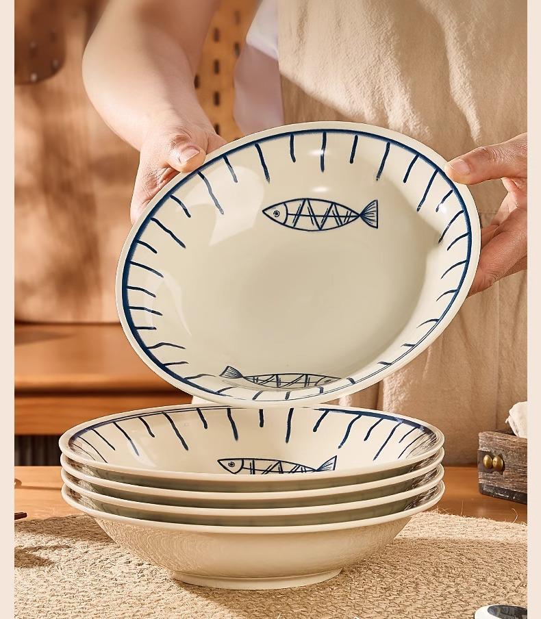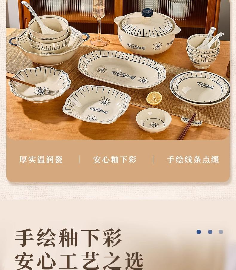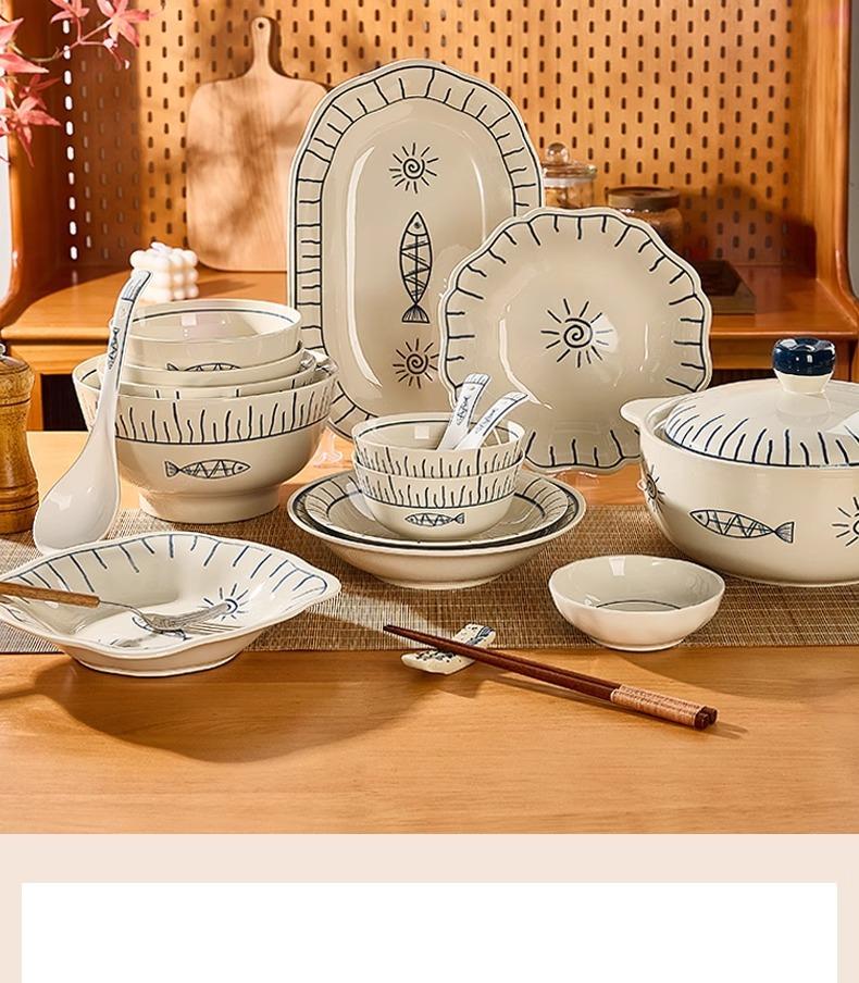 Plato de Cerámica Plato Hogar 2025 Nuevo Color Bajo Esmalte Retro Vajilla Japonesa Plato Plato Plato de Pescado Tazón y Plato Juego Combinado