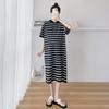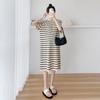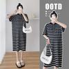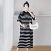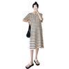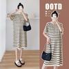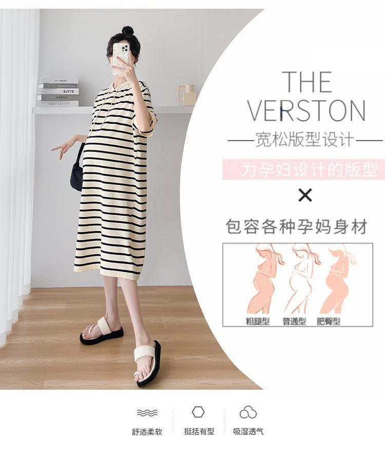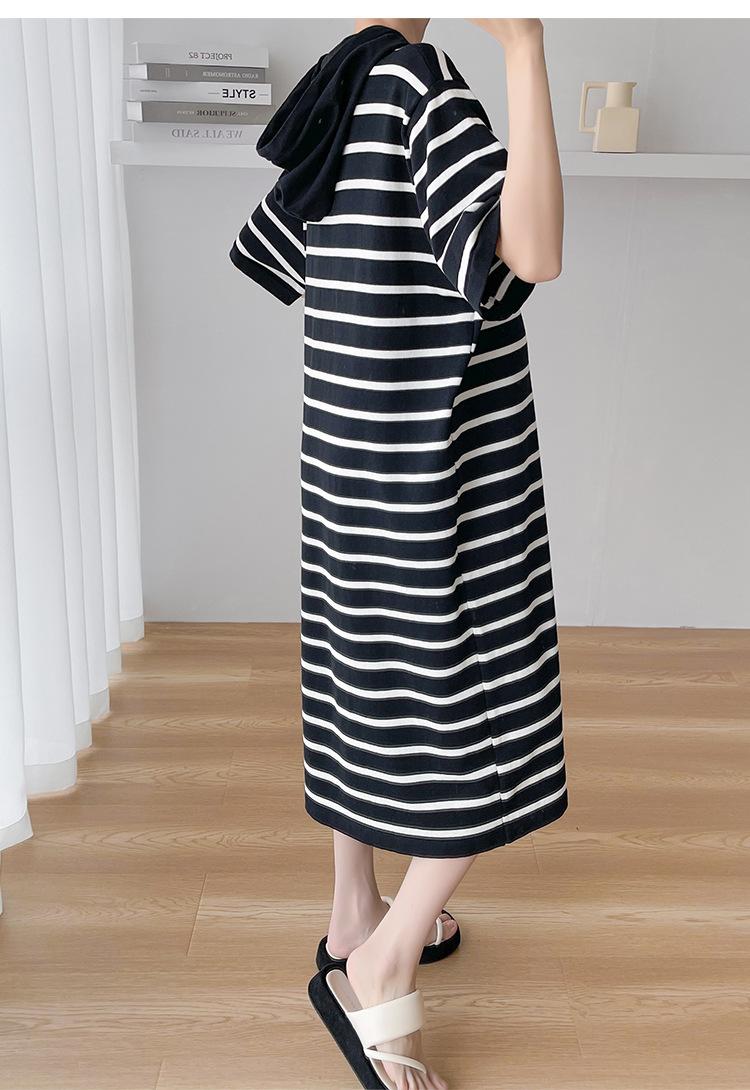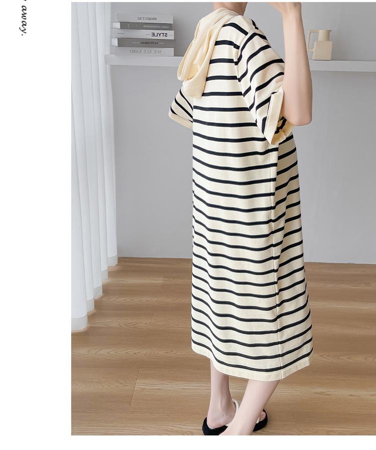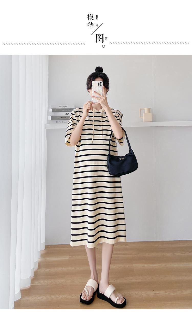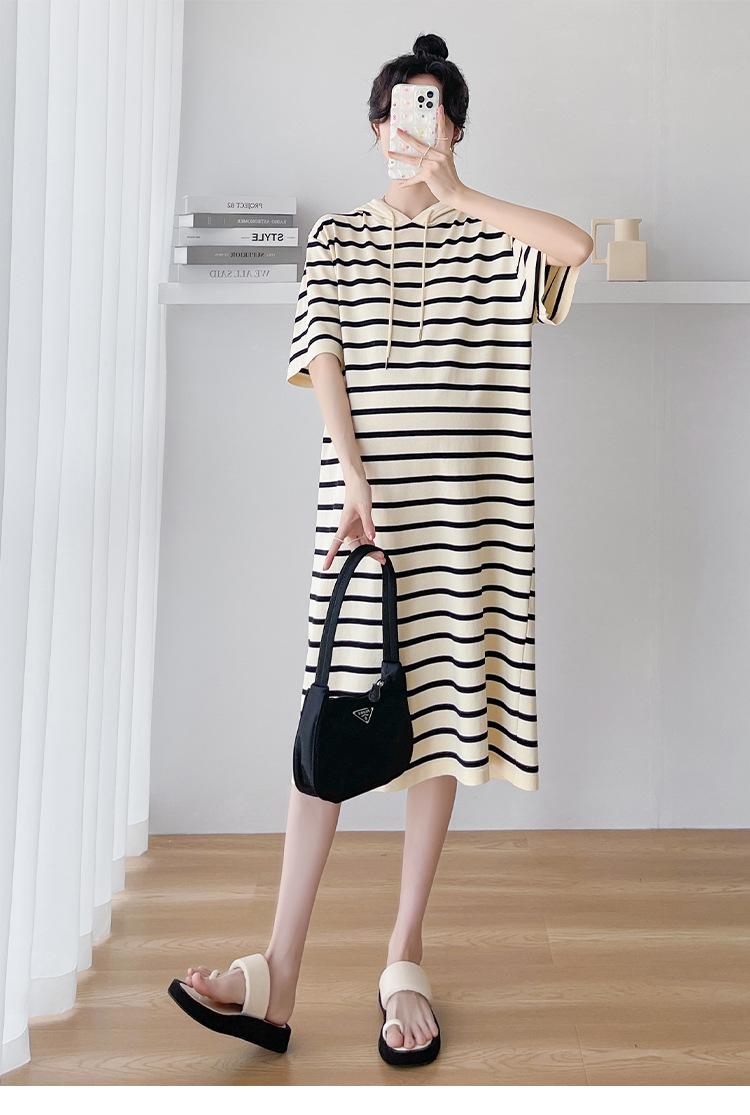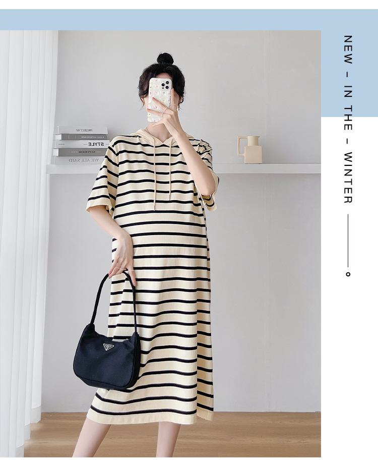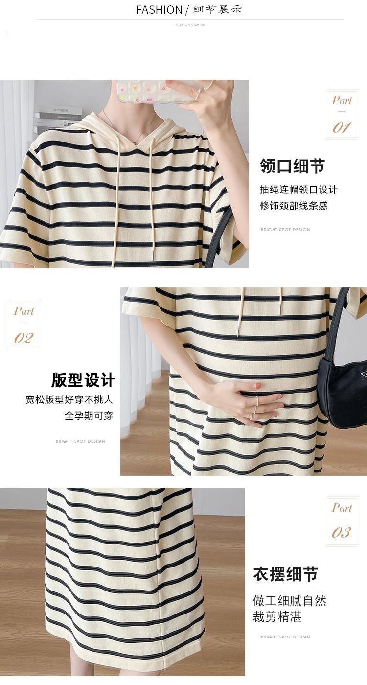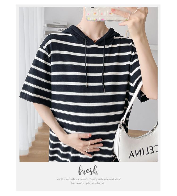 Ropa de Maternidad 2025 Verano Nuevo Talla Grande Rayado con Capucha Seda Helada Suelto Adelgazante Vestido Midi