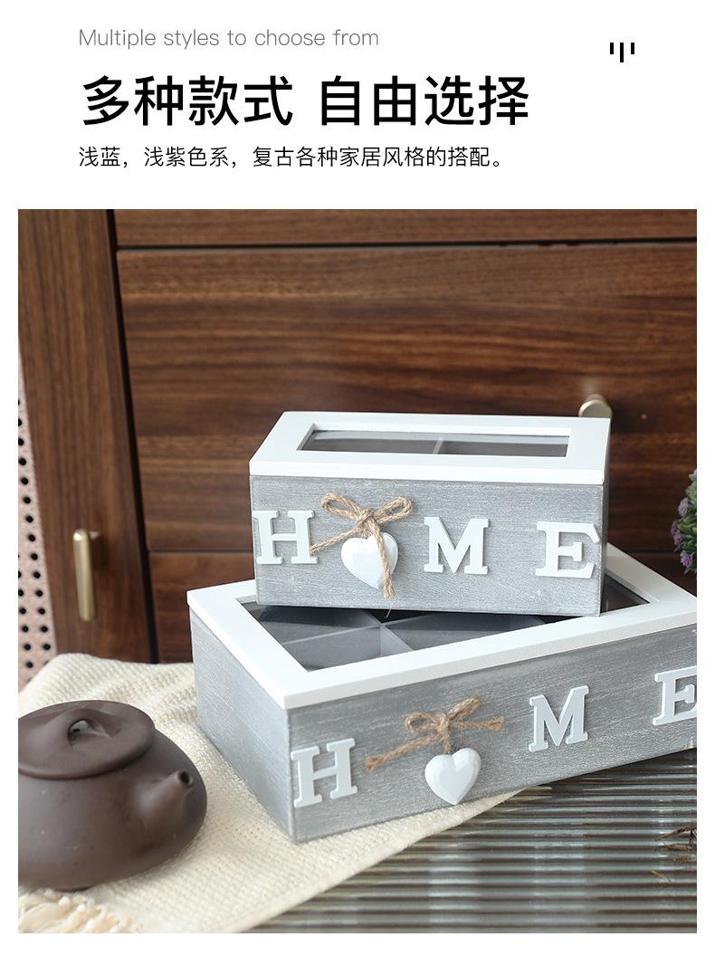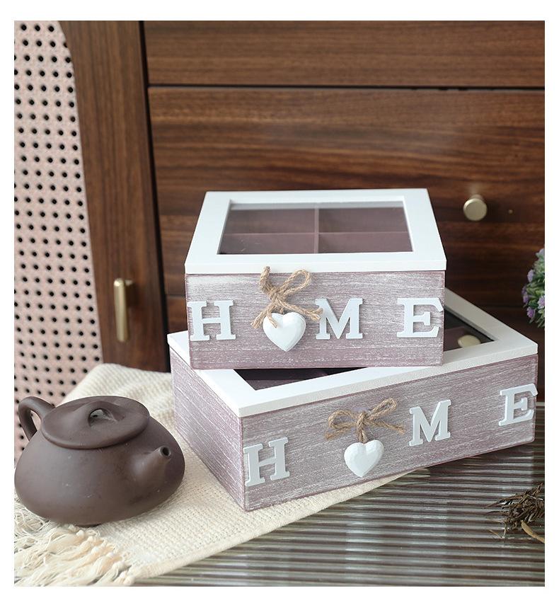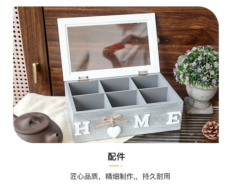 Compra Caja de Madera Americana Joyero Adornos Hogar Compartimento para Bolsas de Té y Café Caja de Almacenamiento Antigua de Múltiples Compartimentos Decoración al por mayor en Joom.pro