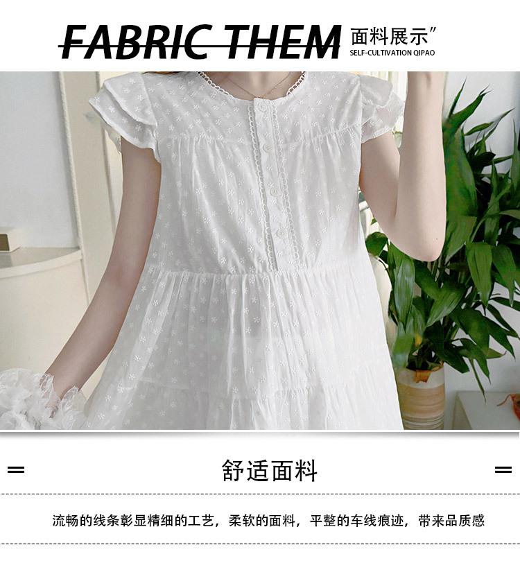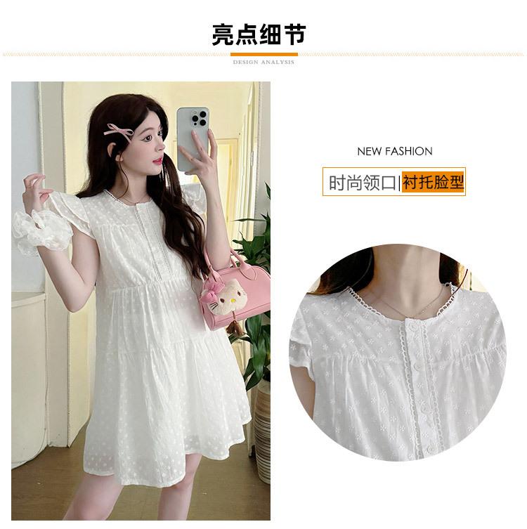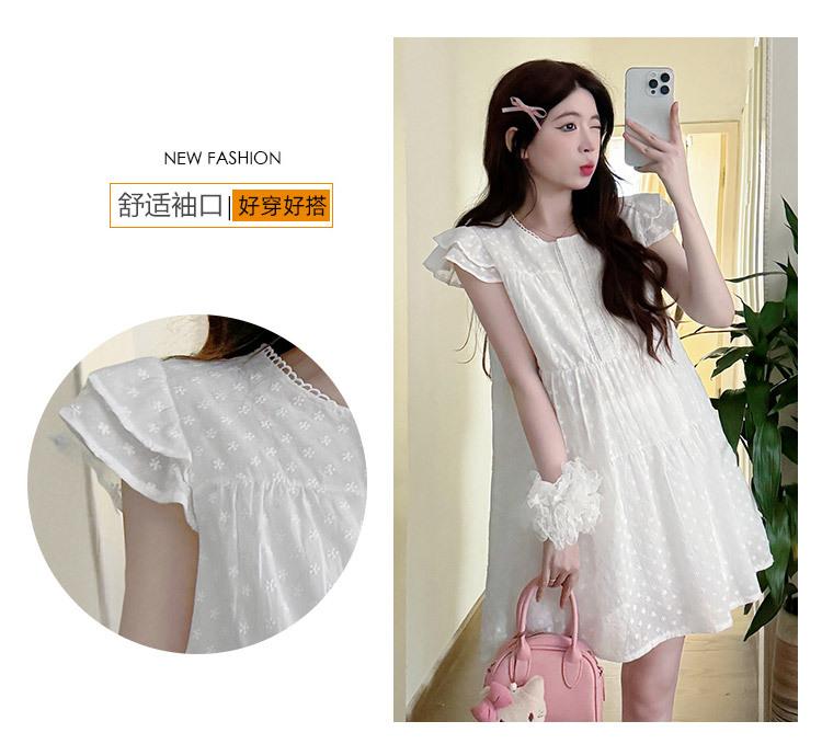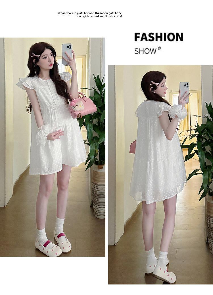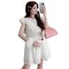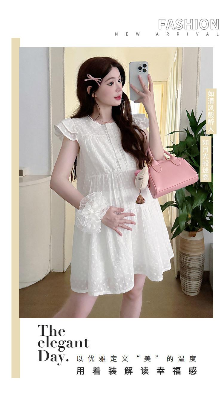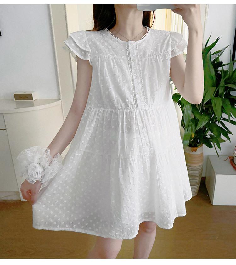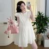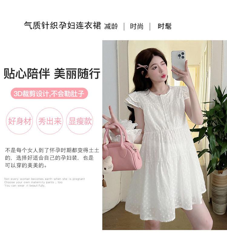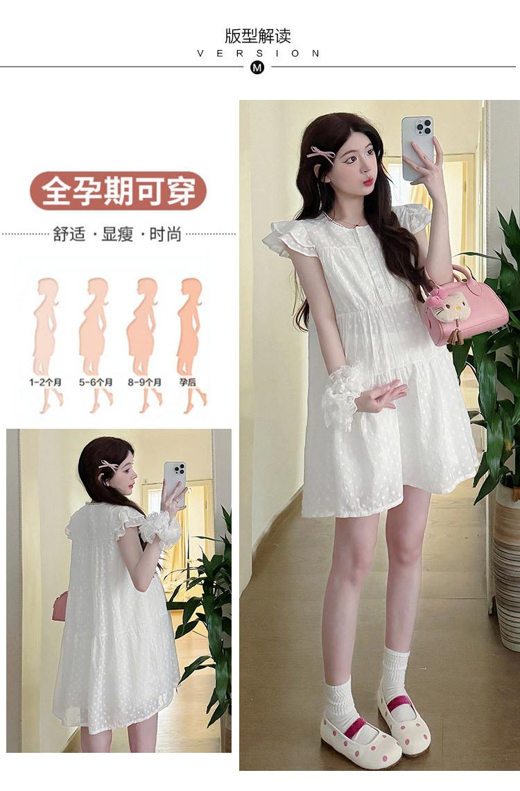 Ropa de Maternidad 2025 Nuevo Estilo de Verano Mangas Volantes Dulce Encaje Bordado Vestido Holgado de Maternidad