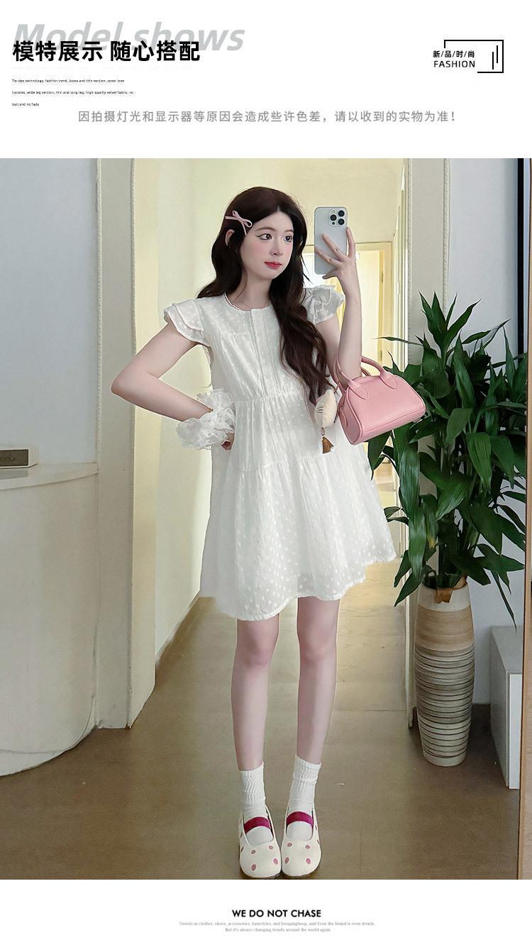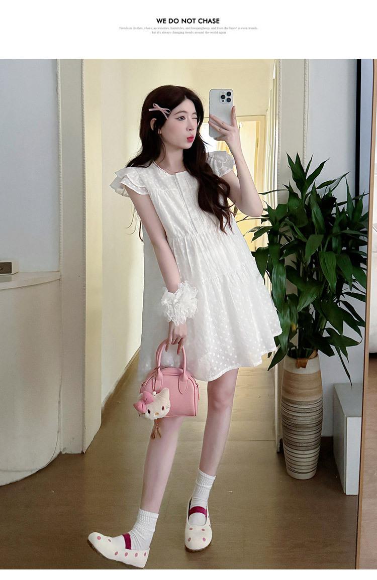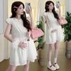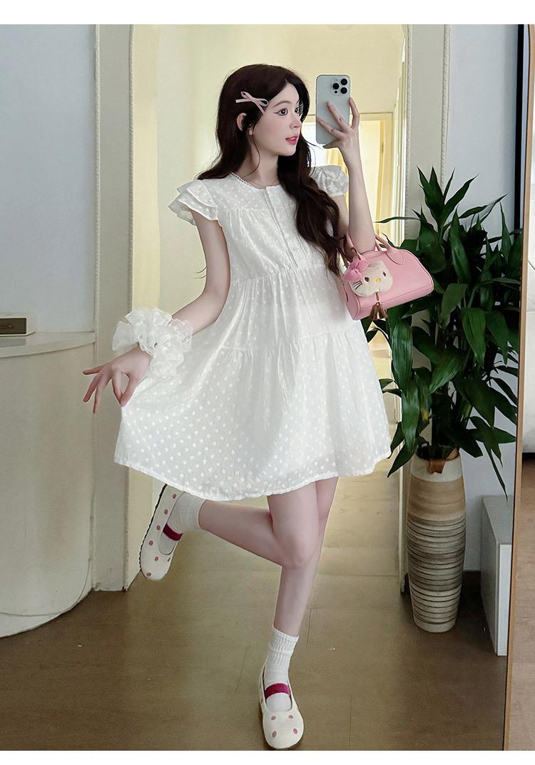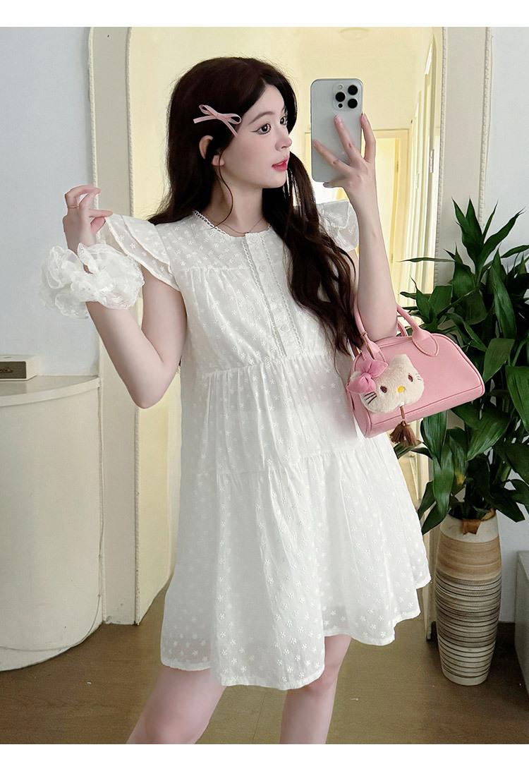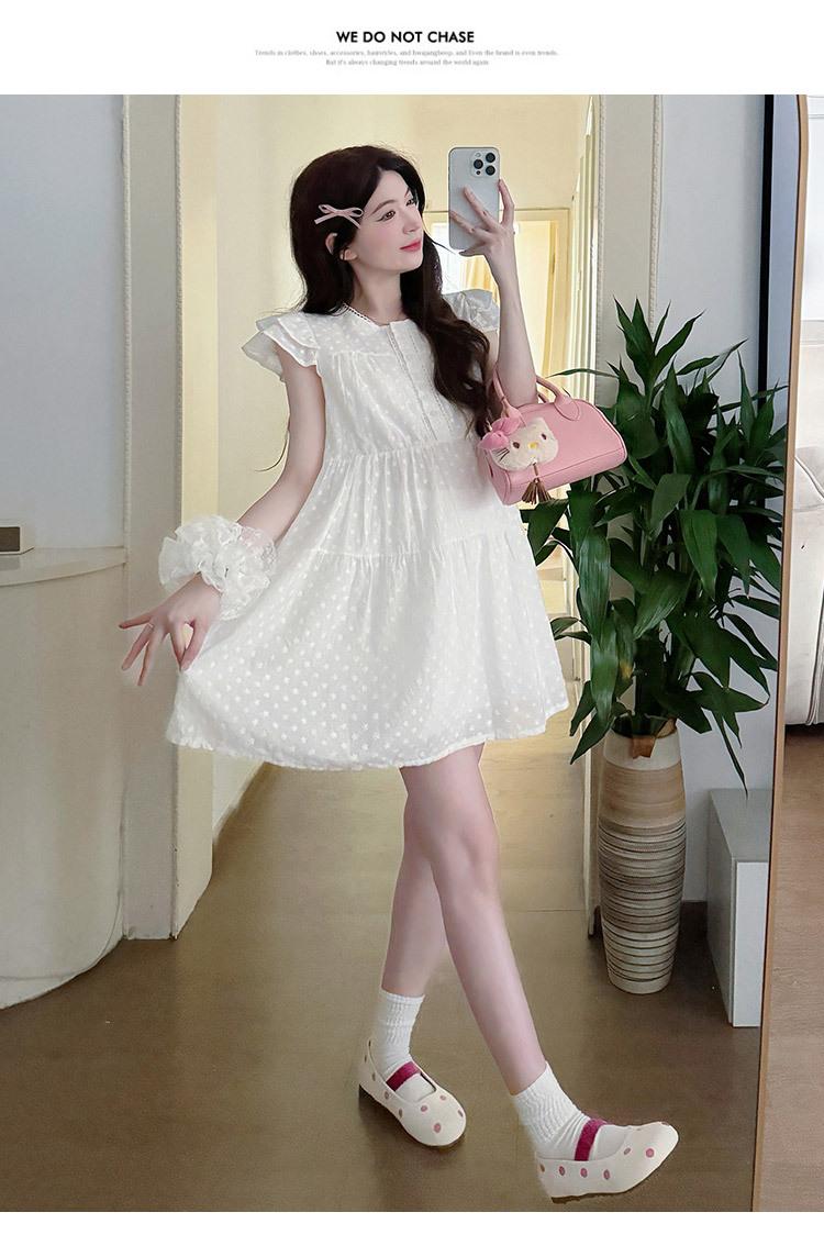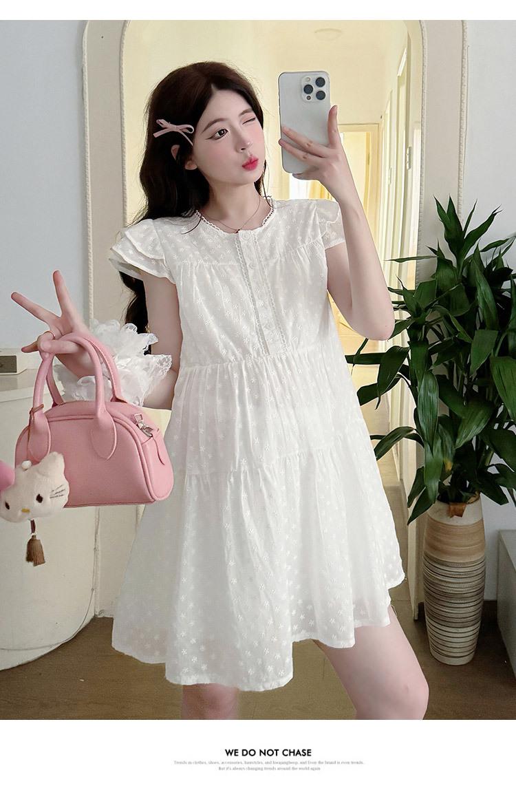 Ropa de Maternidad 2025 Nuevo Estilo de Verano Mangas Volantes Dulce Encaje Bordado Vestido Holgado de Maternidad