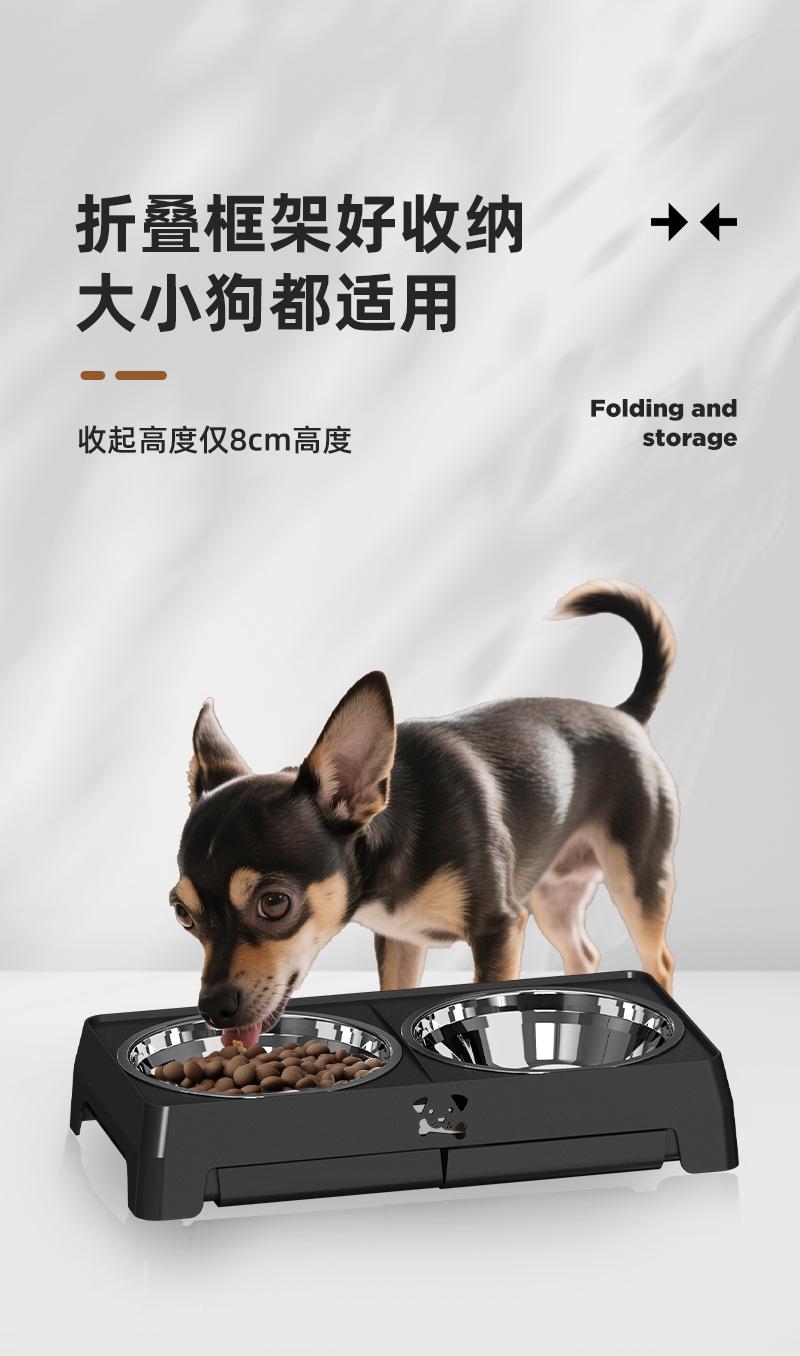 Tazón para Perro Ajustable de Acero Inoxidable para Mascotas, Tazón para Perro Ajustable en Altura, Tazón Doble para Perros Medianos y Grandes, Tazón Plegable para Alimentación