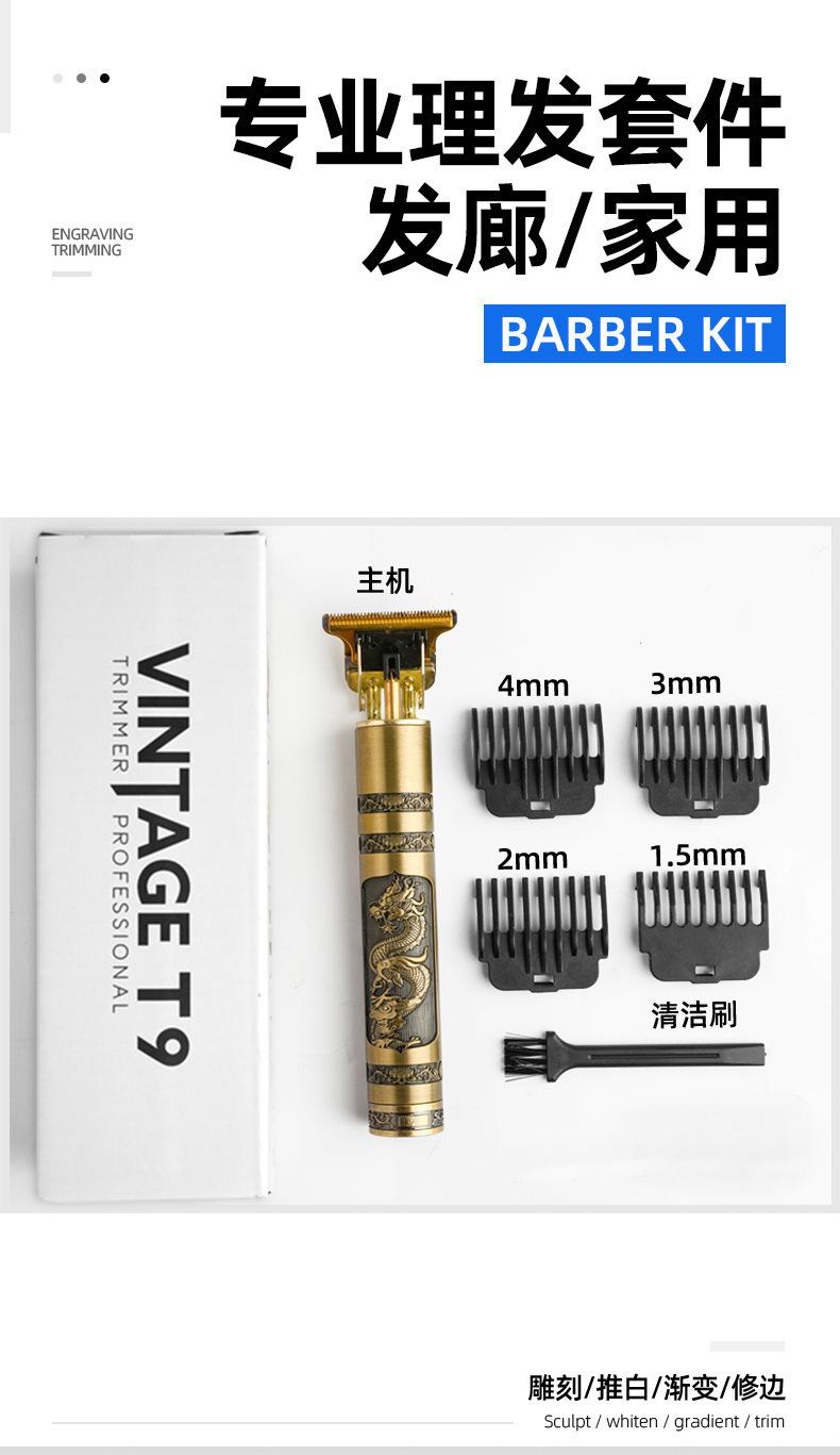 Cortadora de cabello T9 recargable para cabeza de aceite, afeitadora con marca de grabado, cortadora de cabello, cortadora eléctrica para cabeza calva, cortadora eléctrica