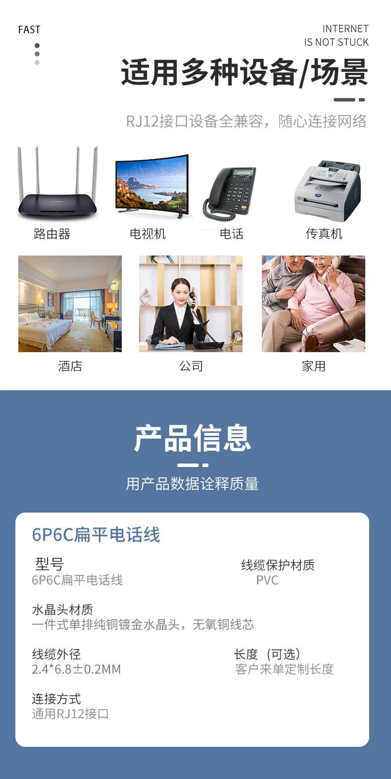 Línea Telefónica de Seis Hilos de Cobre Puro 6P6C/Rj-11/Rj12 Terminada Línea de Señal de Voz Cable de Red para Línea de Amplificador de Potencia de Coche