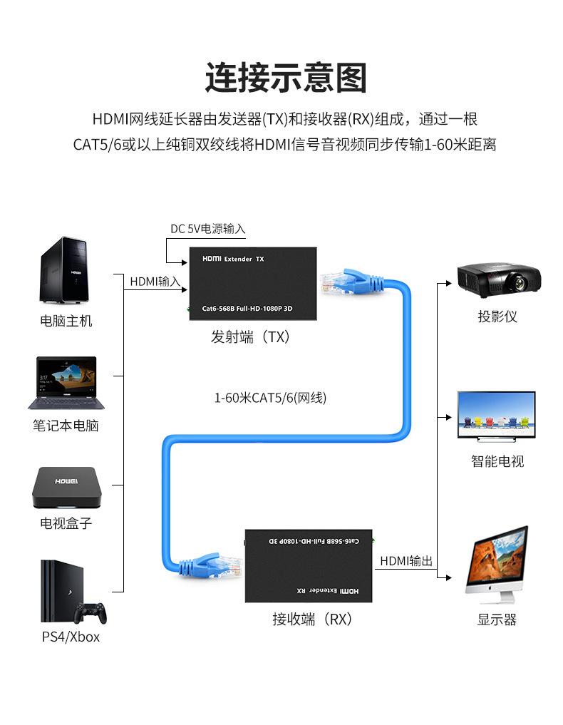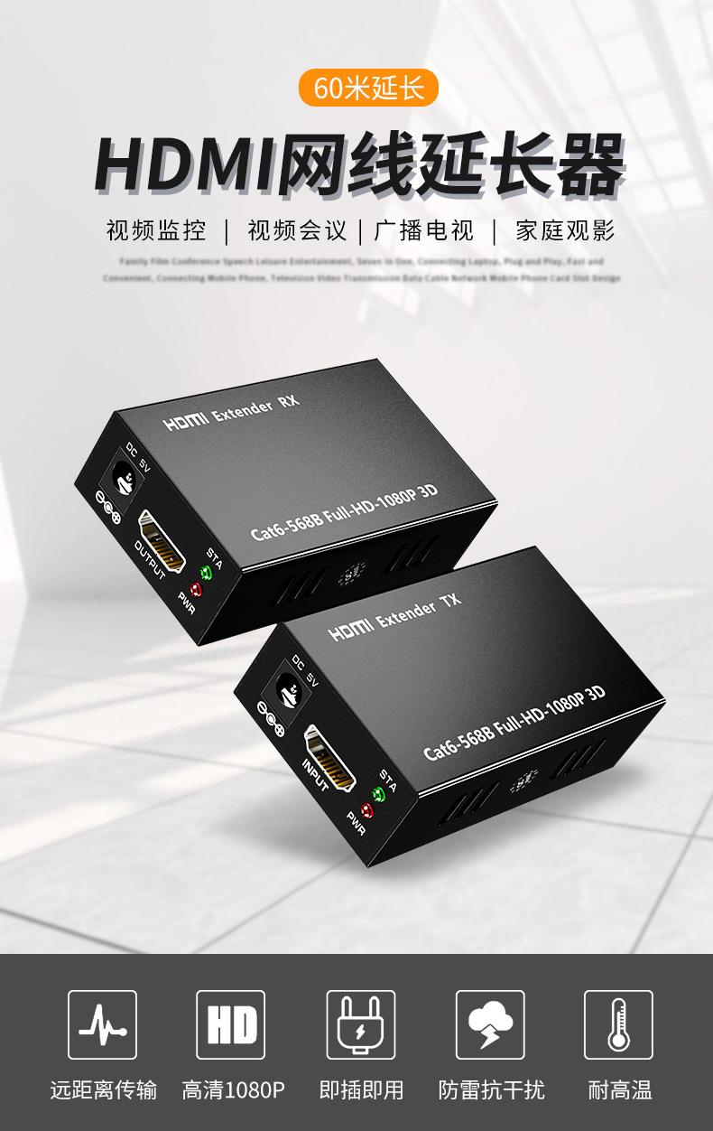 Extensor HDMI de un solo cable 60 m Extensión HDMI a RJ45 30 m Amplificador de transmisión de señal 120 m