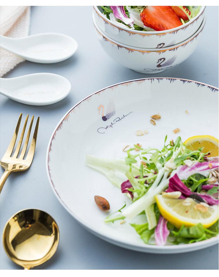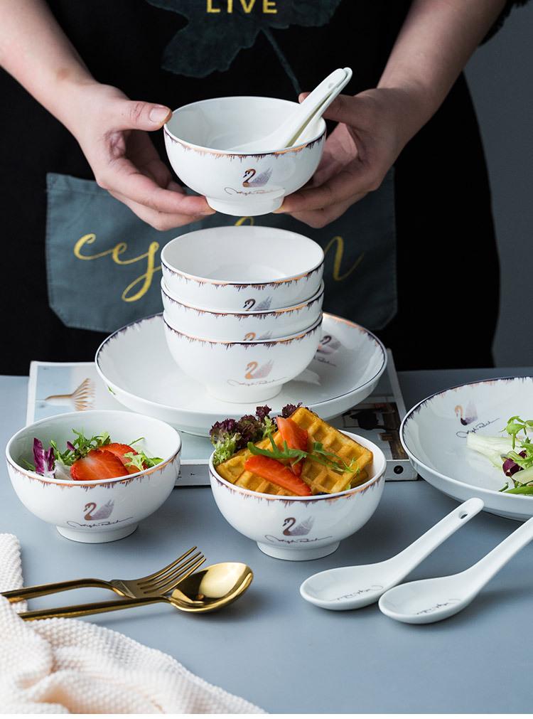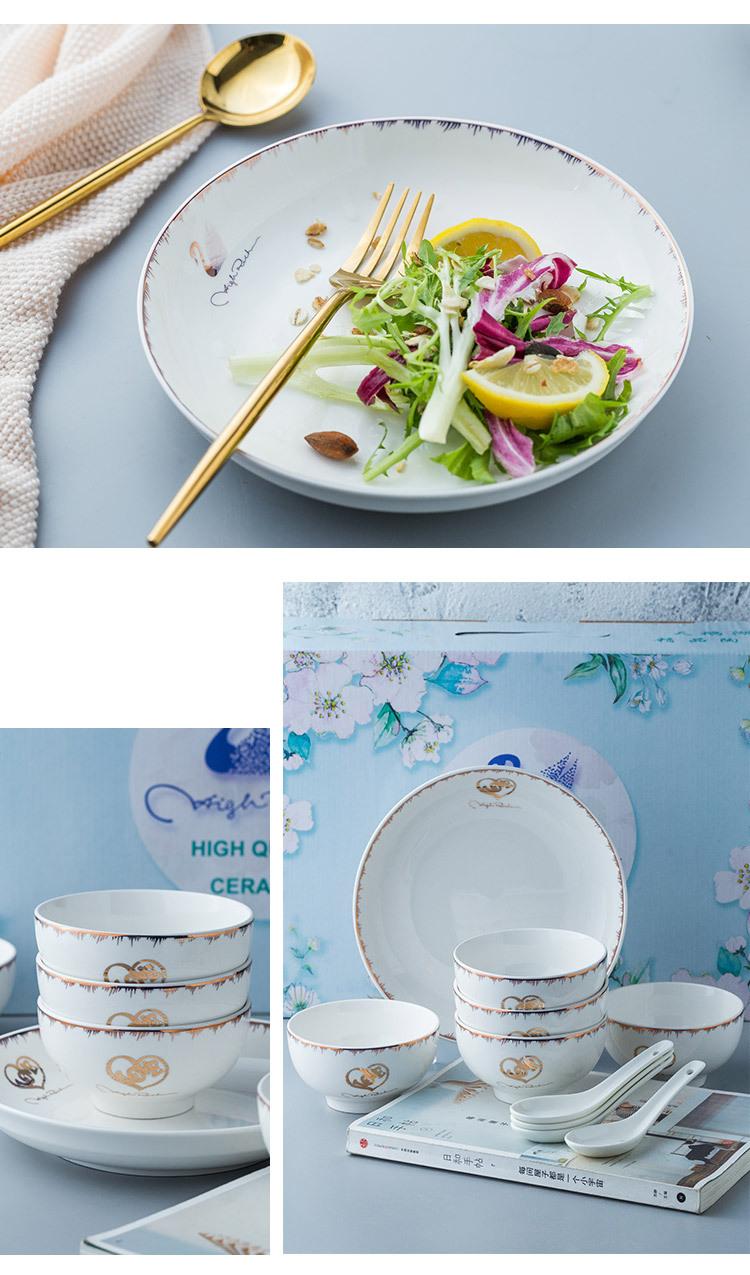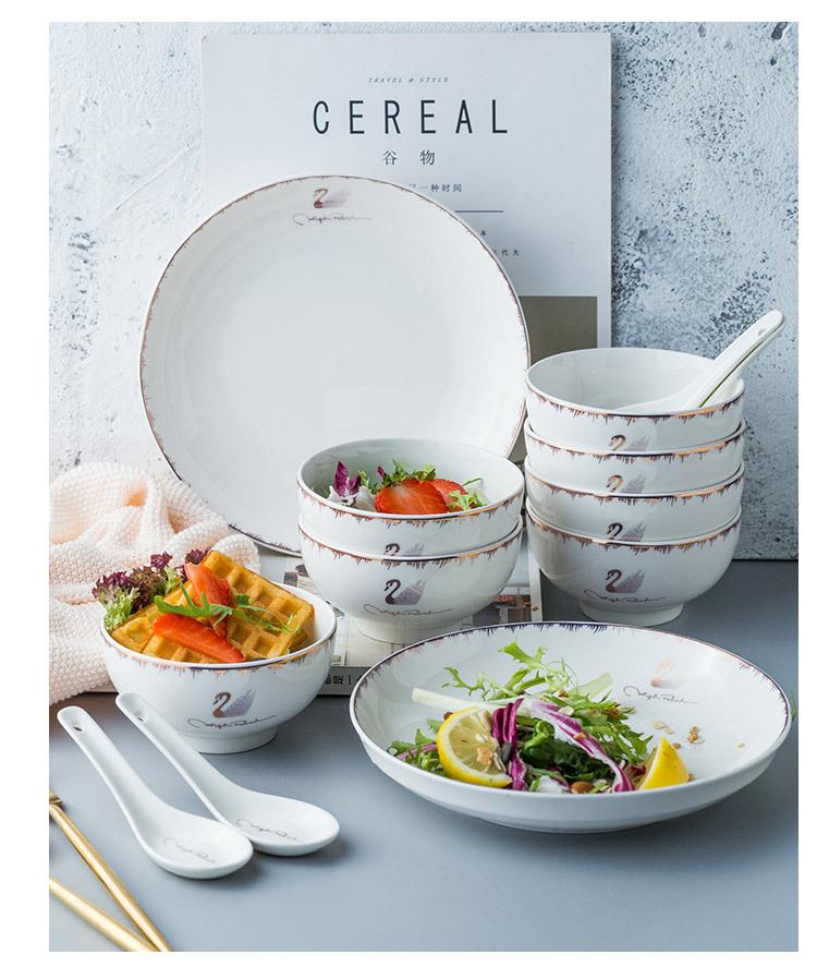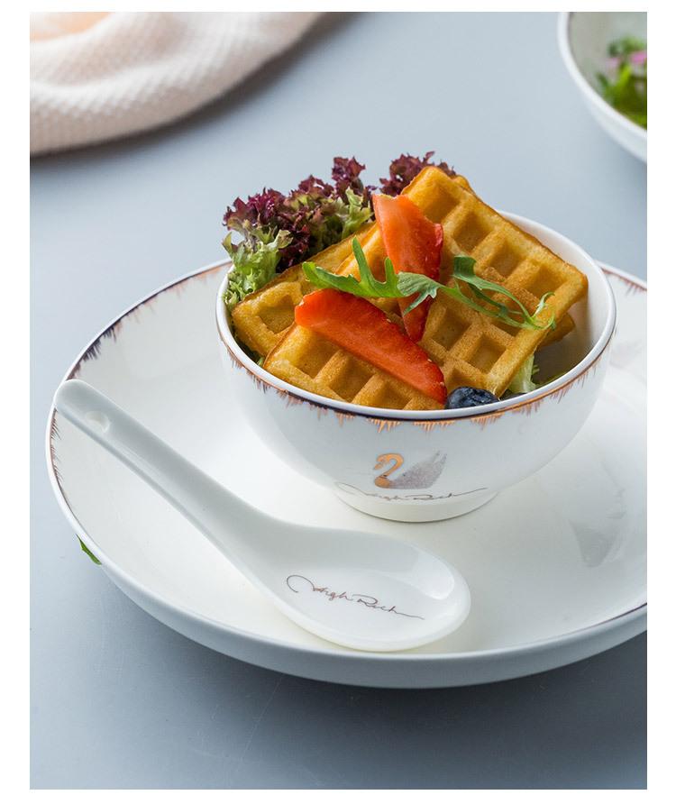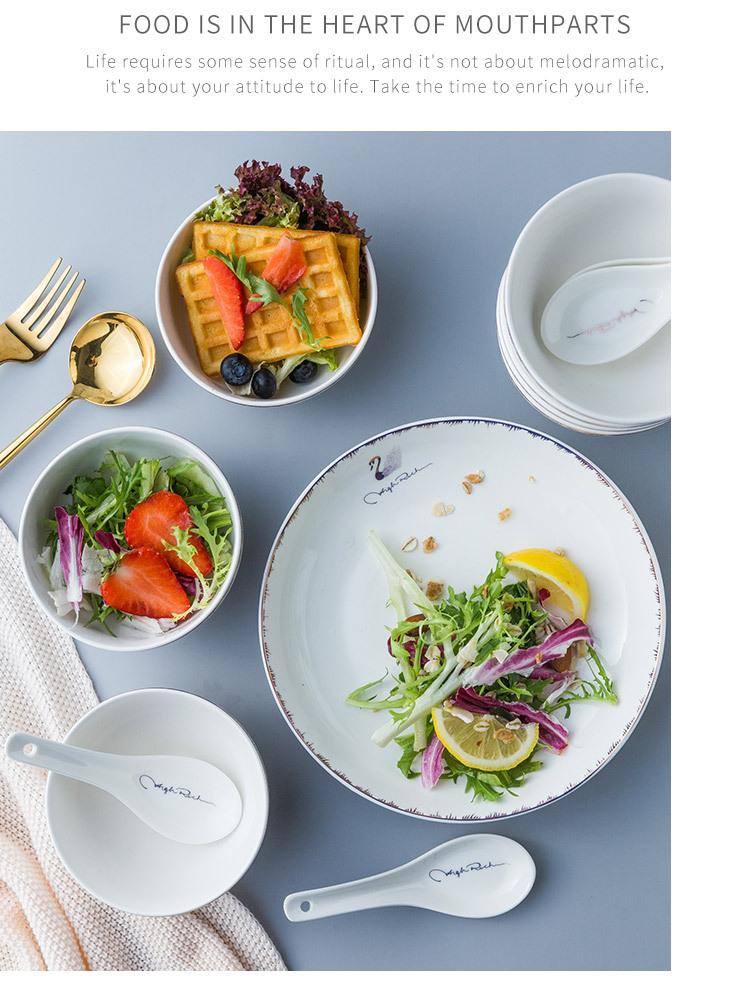 Vajilla de cerámica para el hogar de moda Juego de tazón y cuchara plato de cerámica simple europeo para el hogar Tazón Cuchara