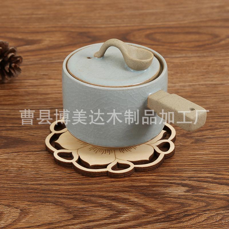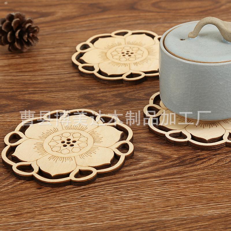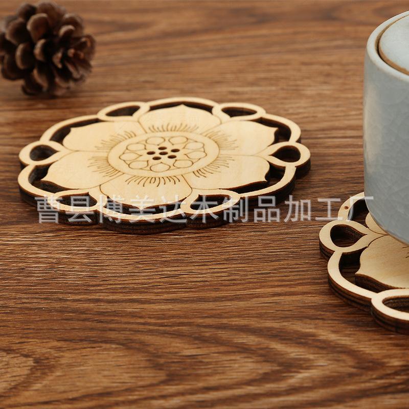 Posavasos de Té Simple de Madera Creativo Loto Posavasos Aislante Calado Tallado Creativo Posavasos de Café Tapete de Escritorio Antiescaldante