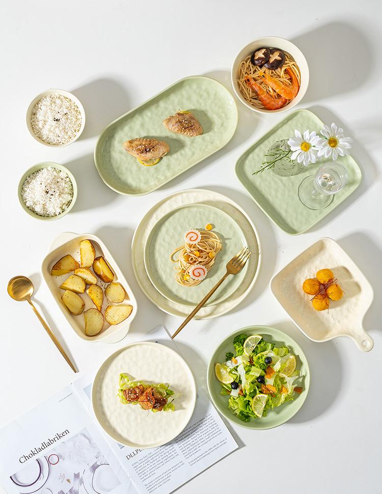 Juego de vajilla de cerámica simple moderno lujo ligero estilo nórdico plato para el hogar de aspecto elegante tazón plato para aderezos tazón para sopa de fideos