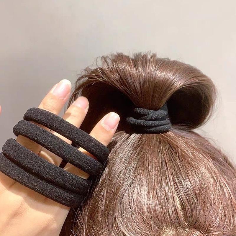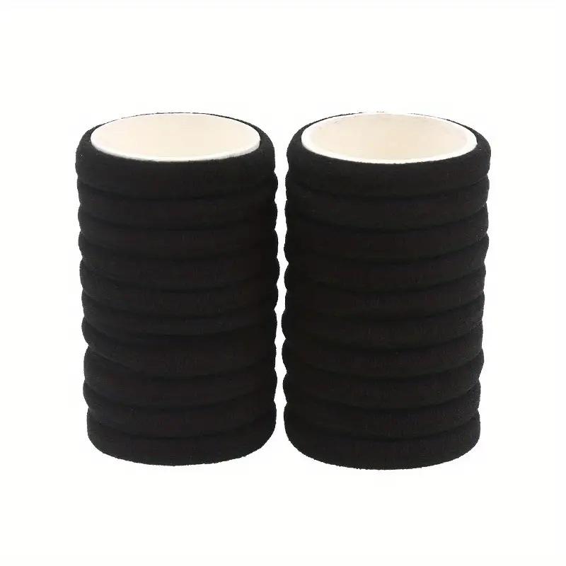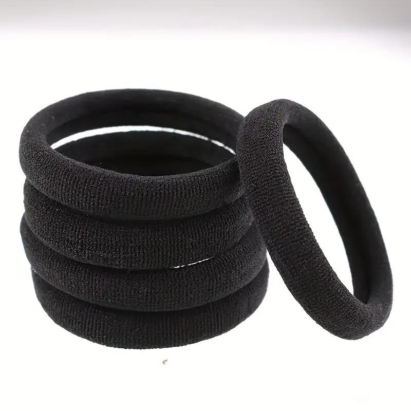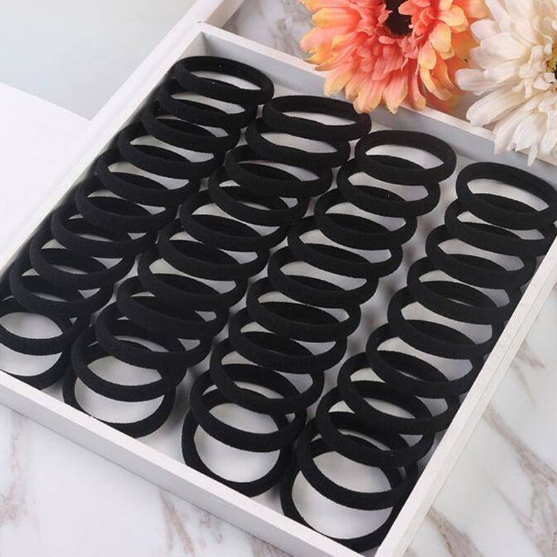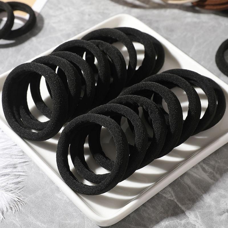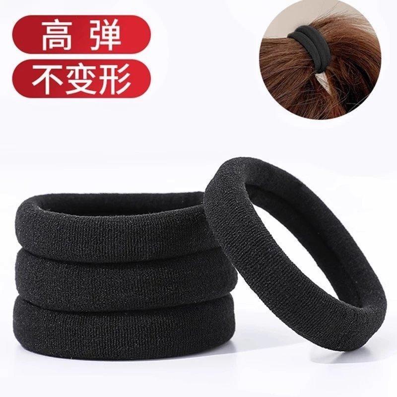 Liga para el cabello negra de alta elasticidad sin costuras tipo toalla, cuerda para la cabeza, banda de goma, coletero simple, cuerda para el cabello con cubierta de cuero para mujer, Venta al por mayor