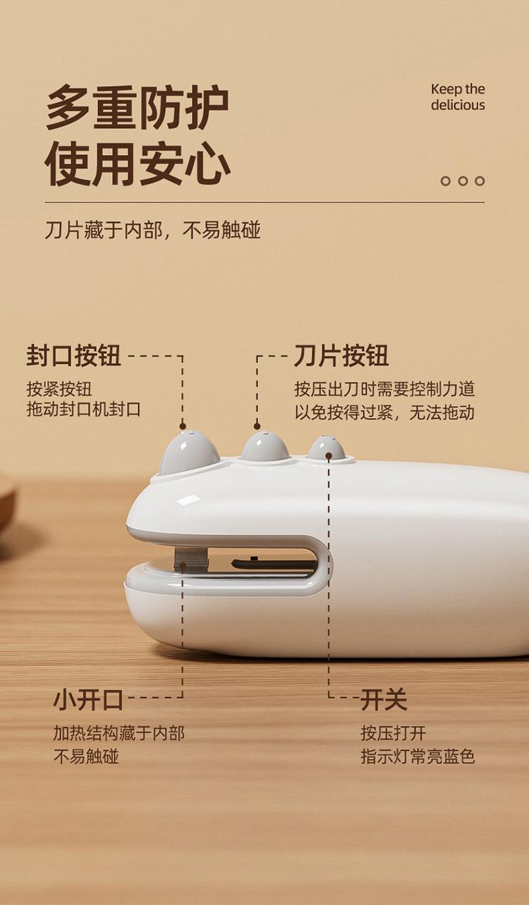 Mini Selladora de Snacks, Selladora Doméstica Pequeña Portátil, Herramienta Selladora y Cortadora de Preservación de Alimentos para Bolsas de Plástico de Doble Propósito