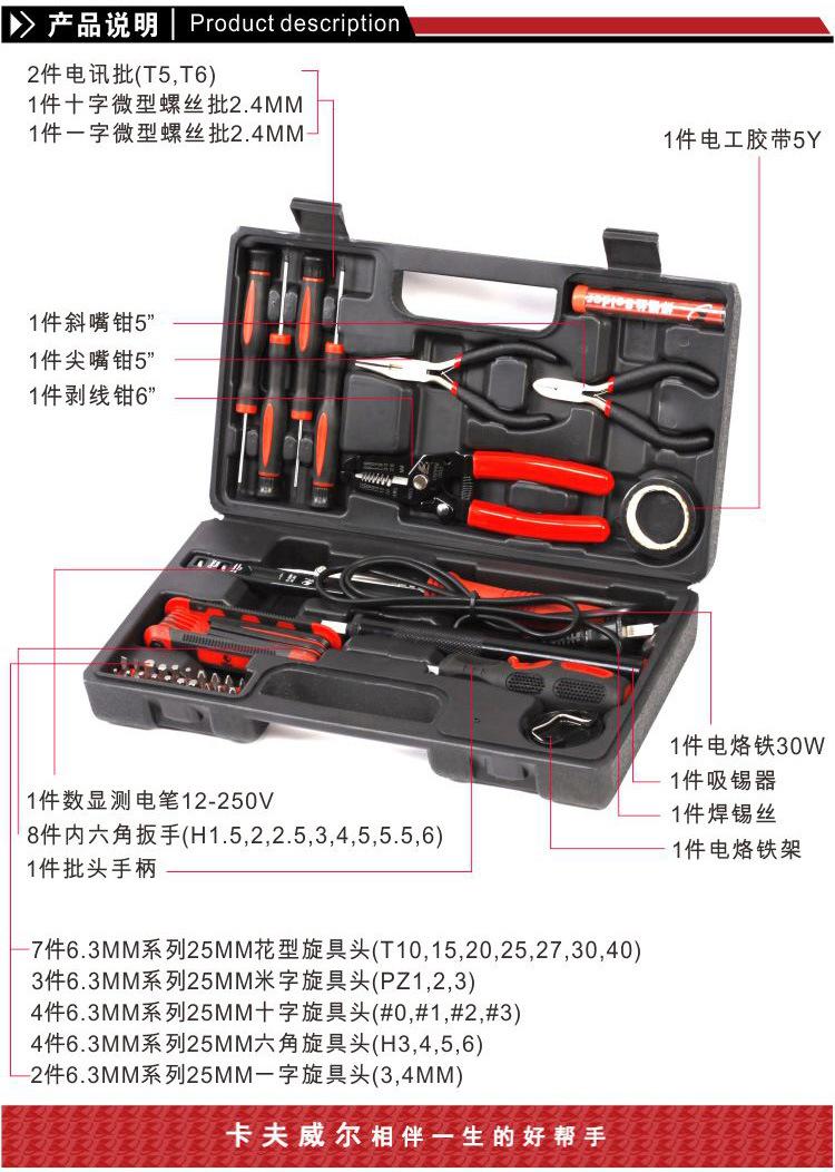 Kraftwell C9002A Juego de Herramientas de Telecomunicaciones de 42 Piezas para Electricistas Domésticos, Renovación, Reparación, Almacenamiento, Multifuncional
