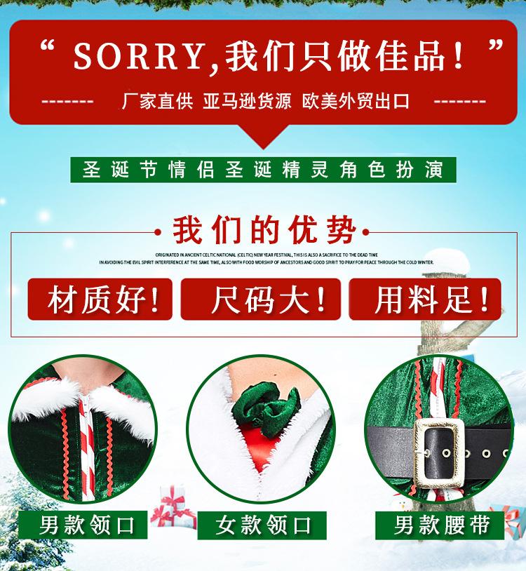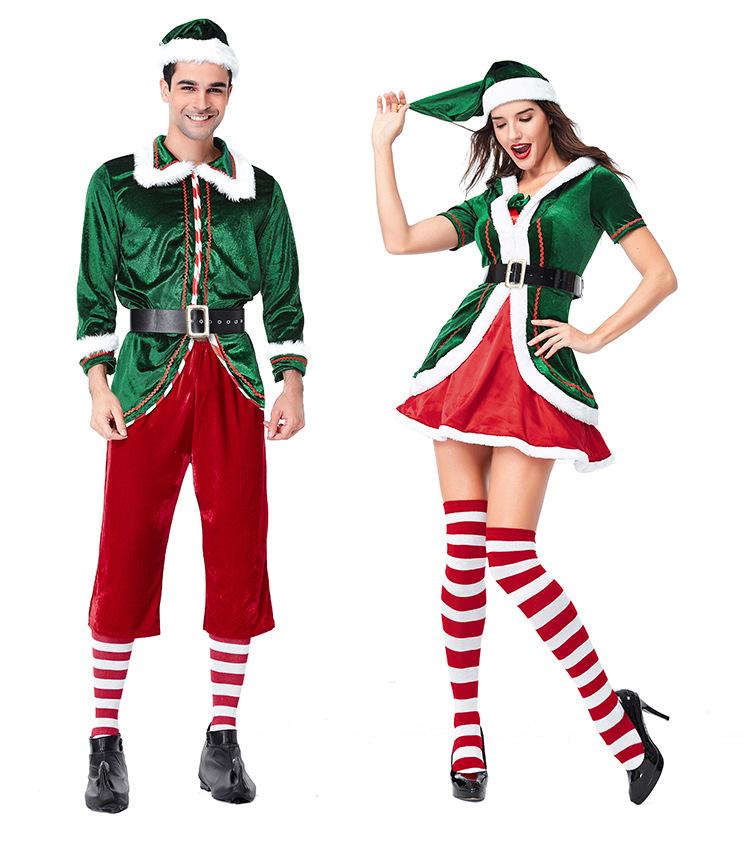 Color Disfraz Manga Larga Disfraz de Navidad Disfraz de Papá Noel Engrosado para Adulto para Fiesta y Actuación Disfraz de Elfo Calcetines de Entrega