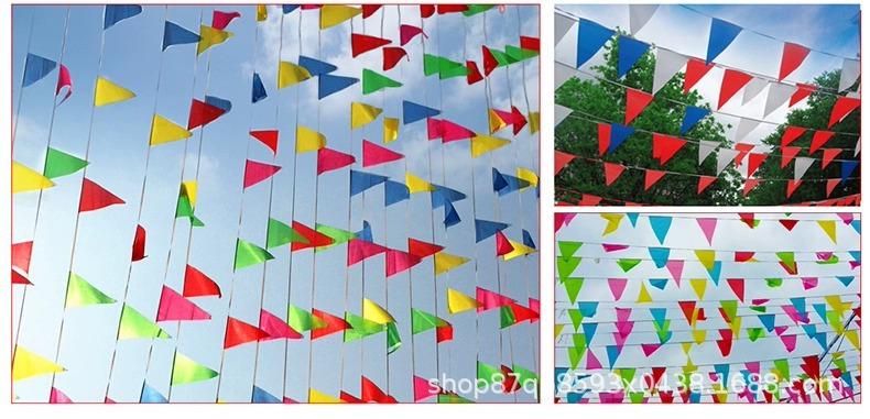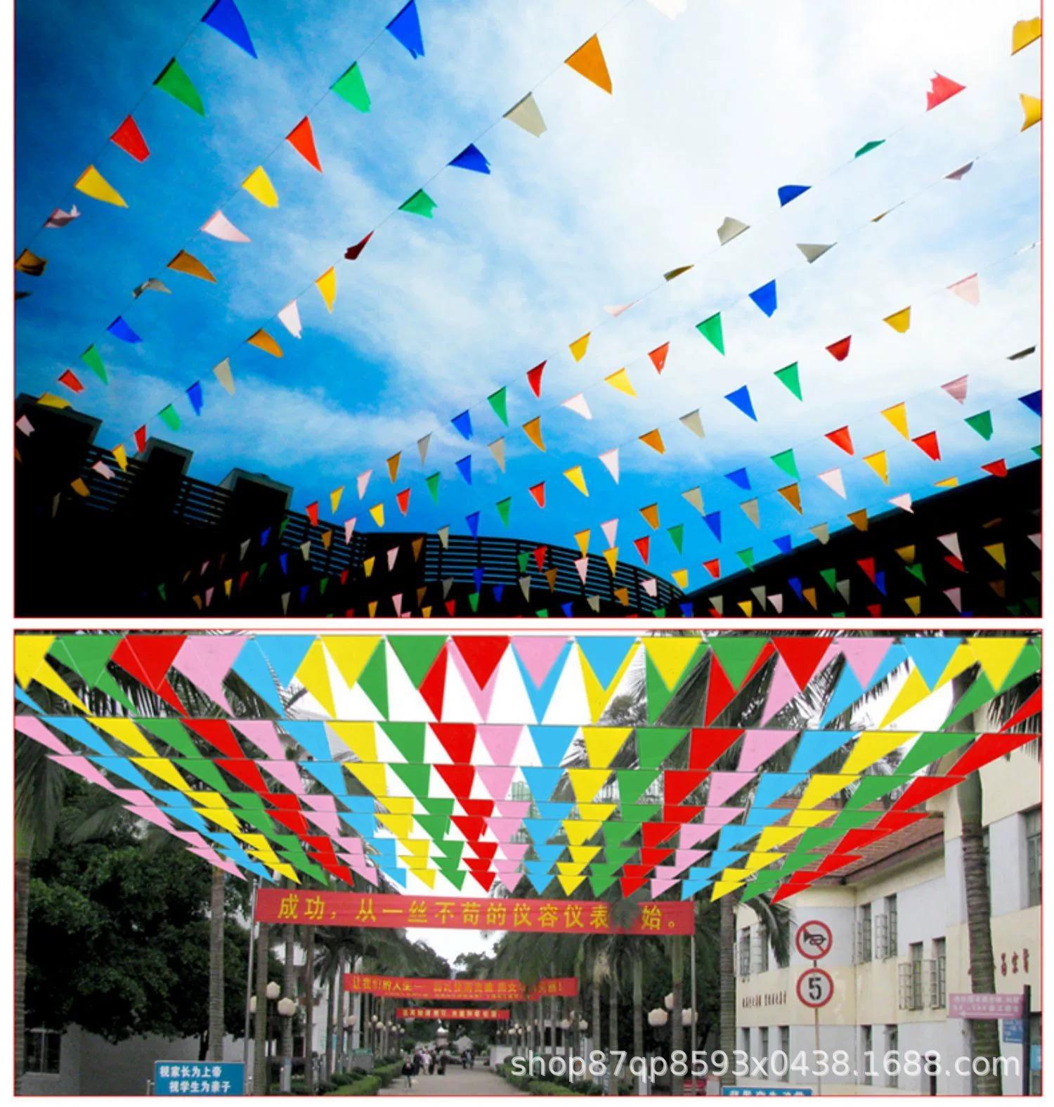 Venta al por mayor de fábrica bandera triangular de cuerda bandera colorida bandera colorida ceremonia de inauguración boda bandera de cuerda sitio construcción bandera de advertencia de seguridad