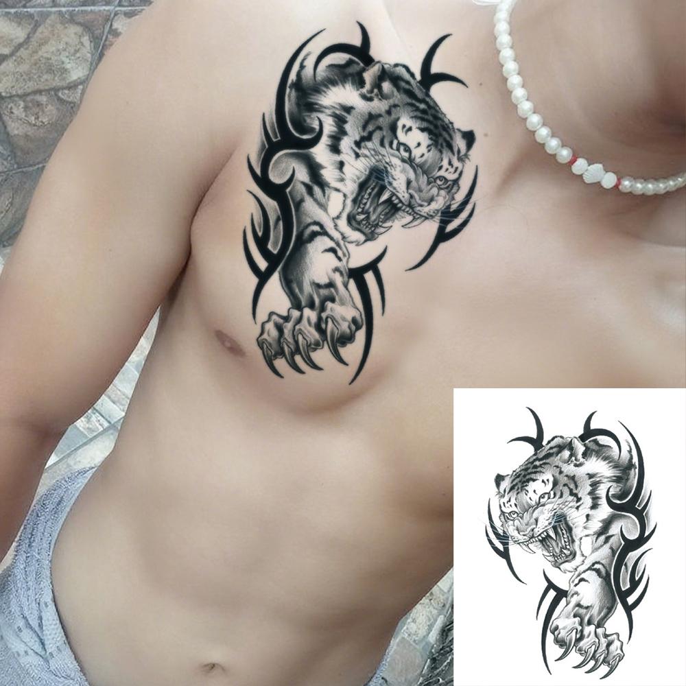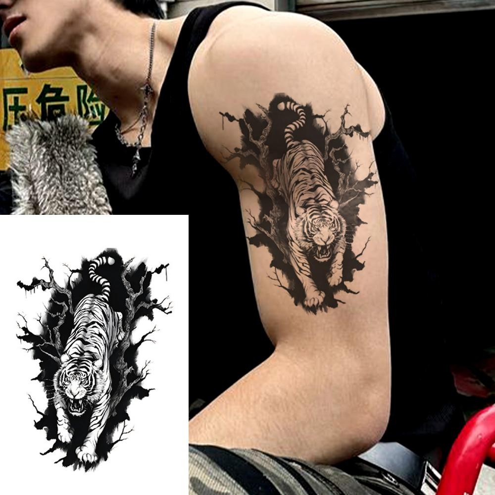 Calcomanías de tatuaje temporal con patrón de tigre jaguar de color negro, impermeables, de larga duración, tatuajes falsos adecuados para hombres y mujeres, brazos, hombros, cuello, espalda, cintura, piernas, festival, fiesta, maquillaje corporal, cubierta de cicatrices, moda diaria, decoración corporal