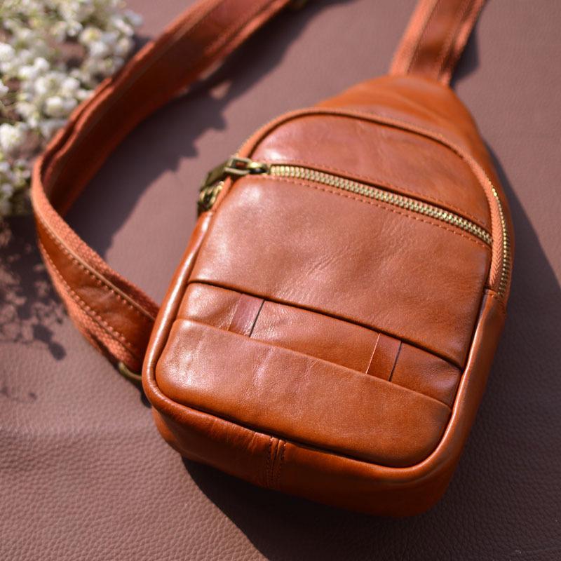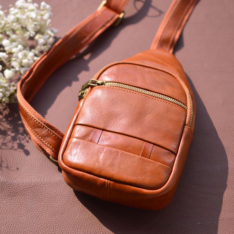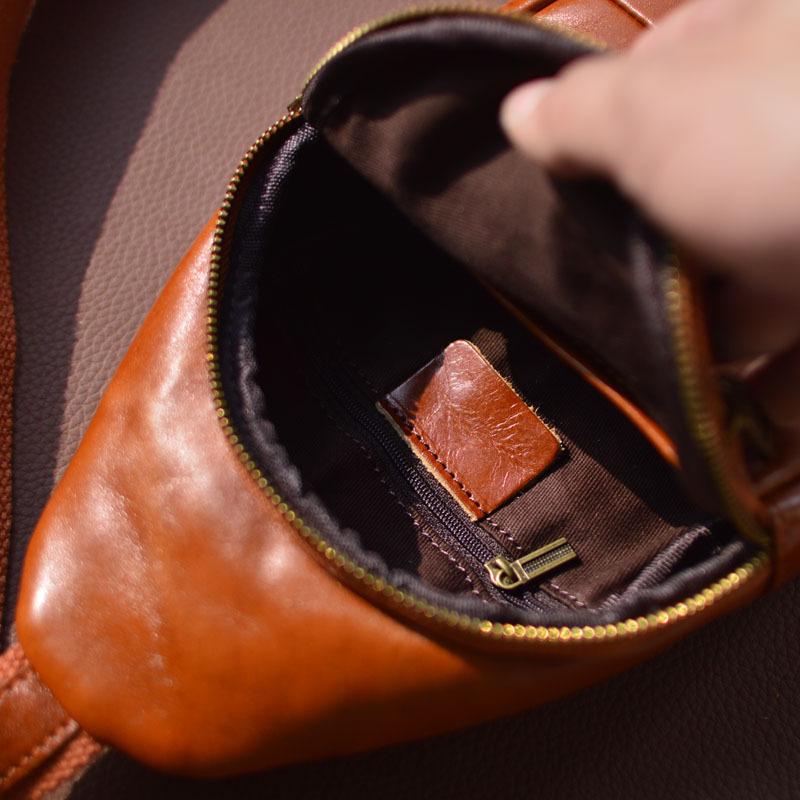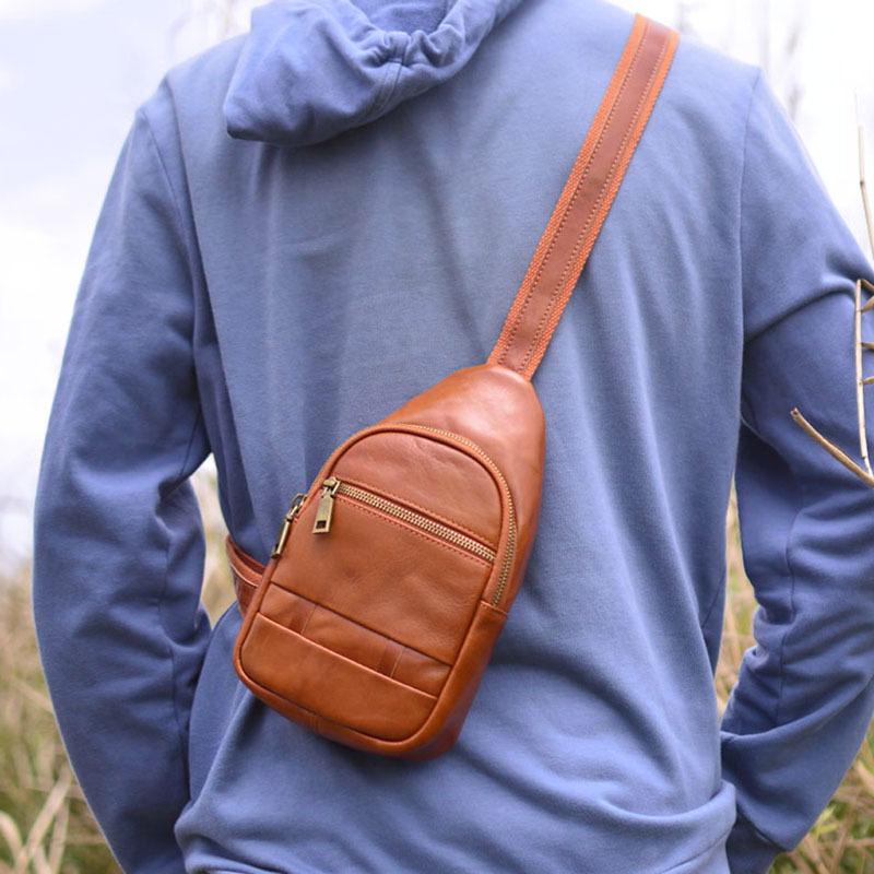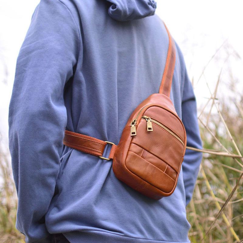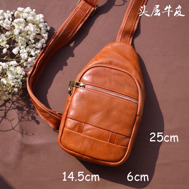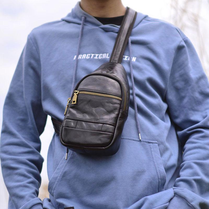 Moda Coreana Cuero Genuino Bolso de Pecho Bolso para Hombre Mochila Casual Bolso para Hombre Cuero Vacuno Bolso de Hombro Bandolera Bolso de Pecho Multifuncional