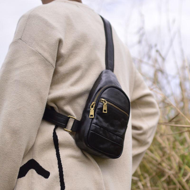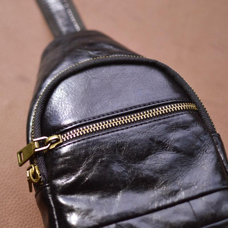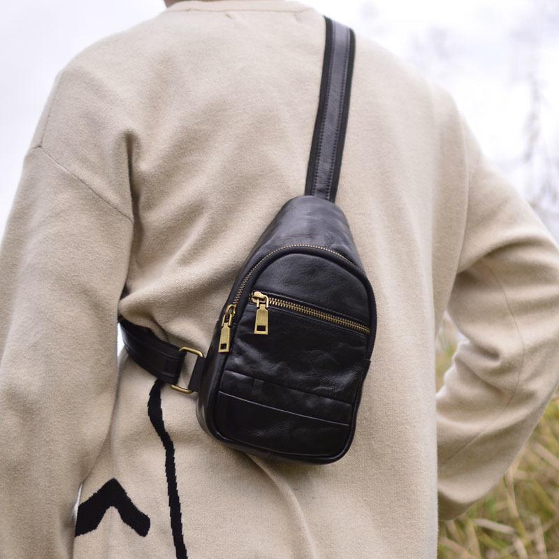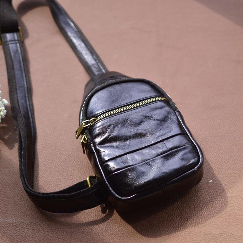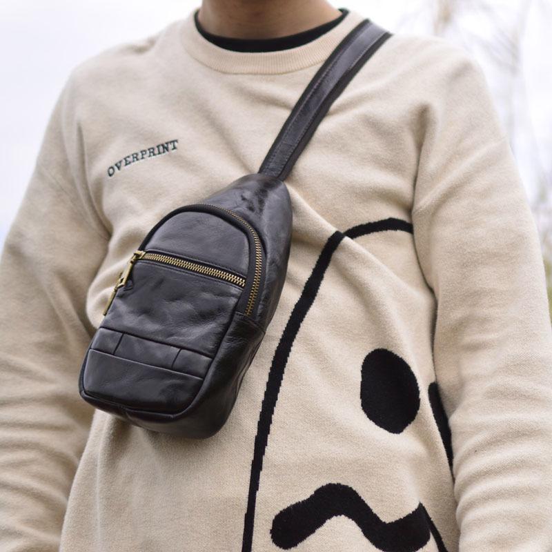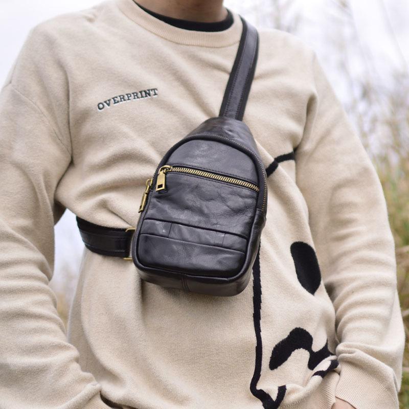Moda Coreana Cuero Genuino Bolso de Pecho Bolso para Hombre Mochila Casual Bolso para Hombre Cuero Vacuno Bolso de Hombro Bandolera Bolso de Pecho Multifuncional
