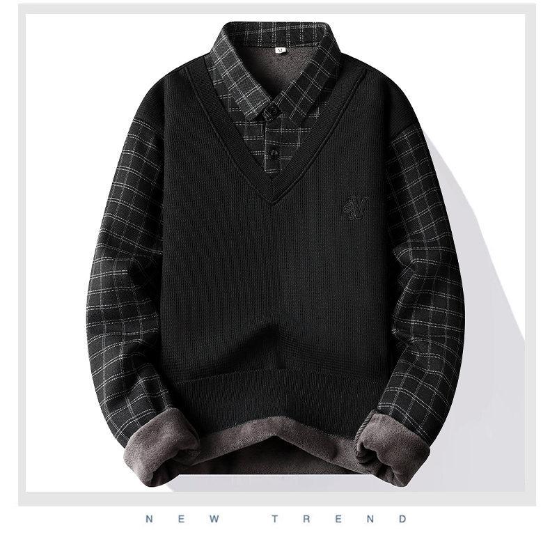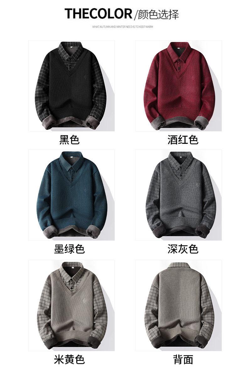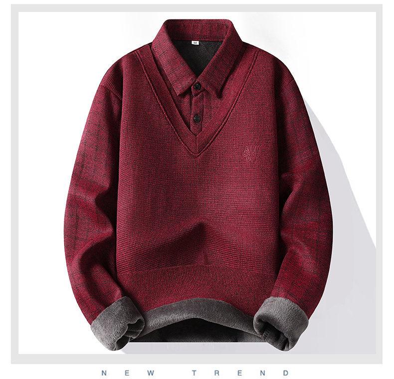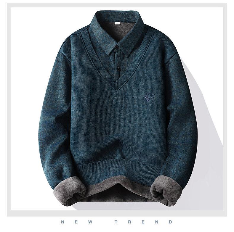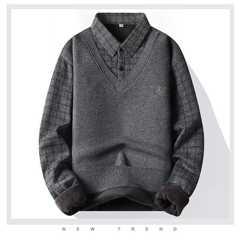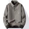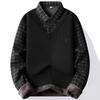 Nuevo Otoño e Invierno para Hombre Falso Dos Piezas Tejido Versátil Camisa con Cuello Chaqueta Suéter para Hombre Camiseta Interior