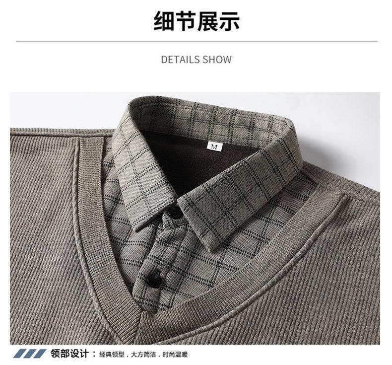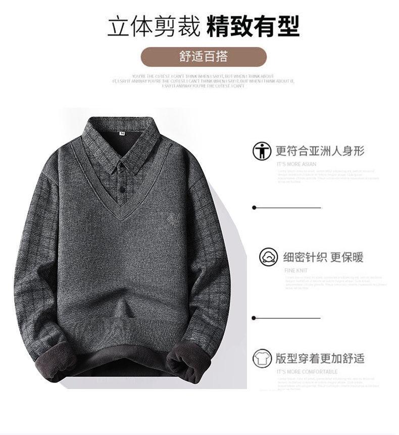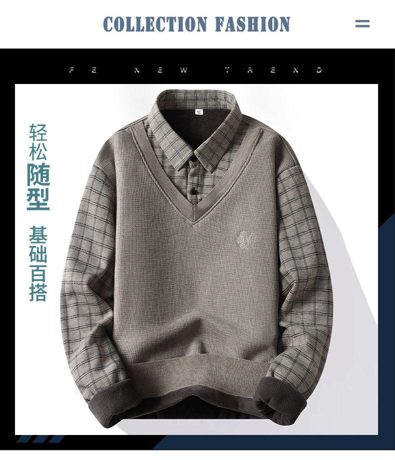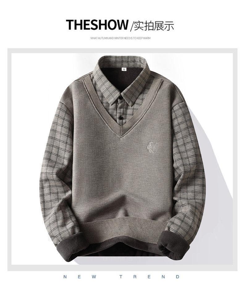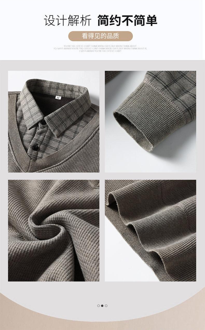 Nuevo Otoño e Invierno para Hombre Falso Dos Piezas Tejido Versátil Camisa con Cuello Chaqueta Suéter para Hombre Camiseta Interior
