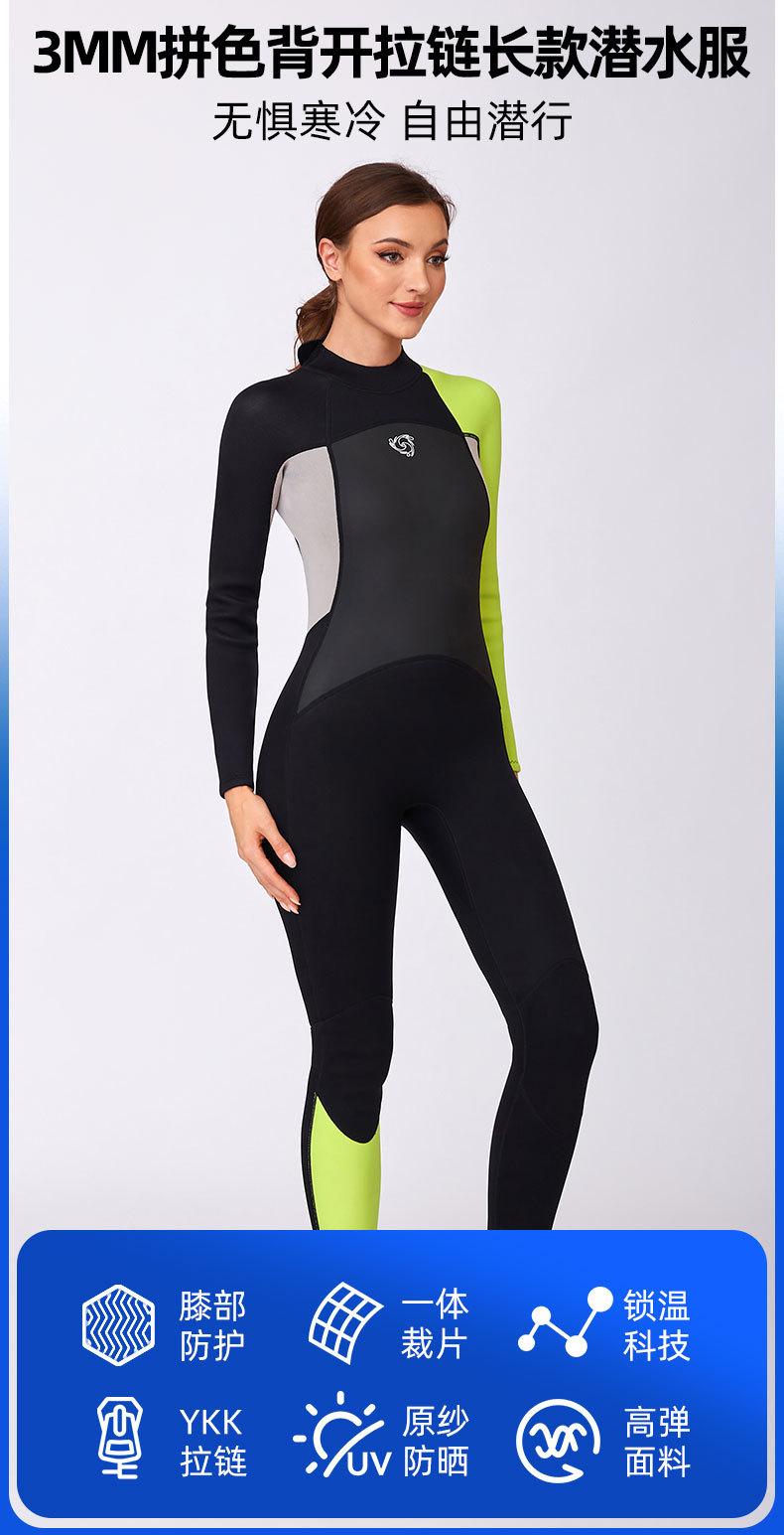 Traje de Neopreno de Manga Larga de Una Pieza para Mujer con Protección Solar Cálido para Clima Húmedo del Fabricante Traje de Buceo Largo de Manga Larga Natación Deportes Surf Impresión