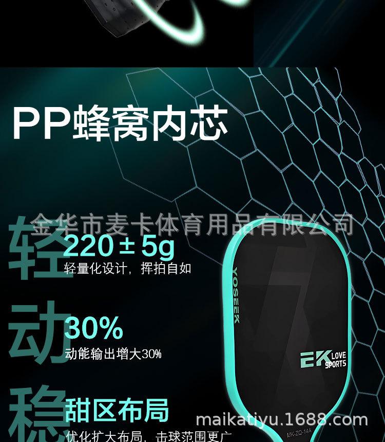 Raqueta de Pickleball de Fibra de Vidrio y Fibra de Carbono de Venta Caliente Transfronteriza Deportes al Aire Libre Adulto Estudiante Raqueta de Pickleball Ultraligera