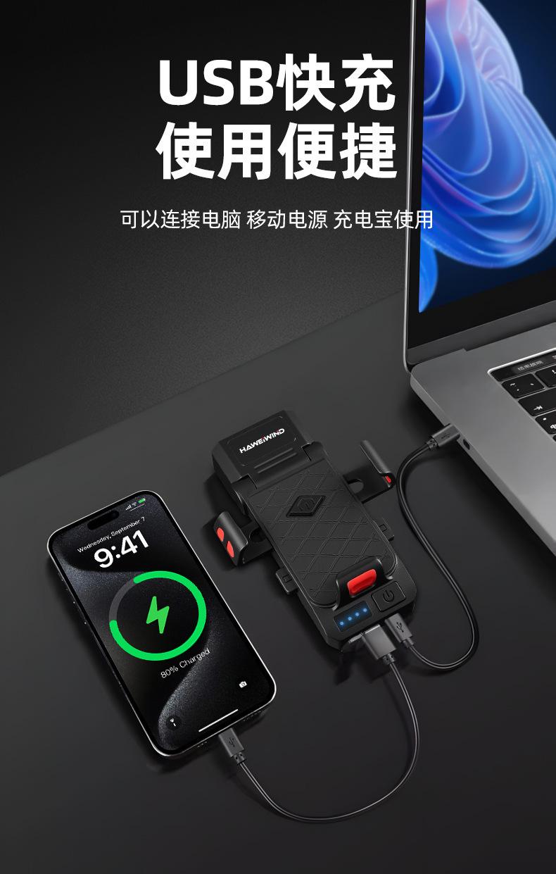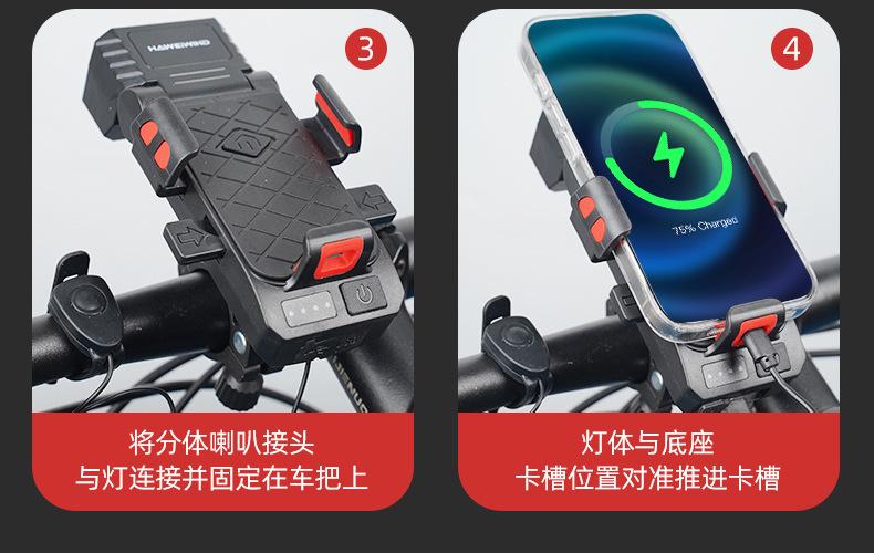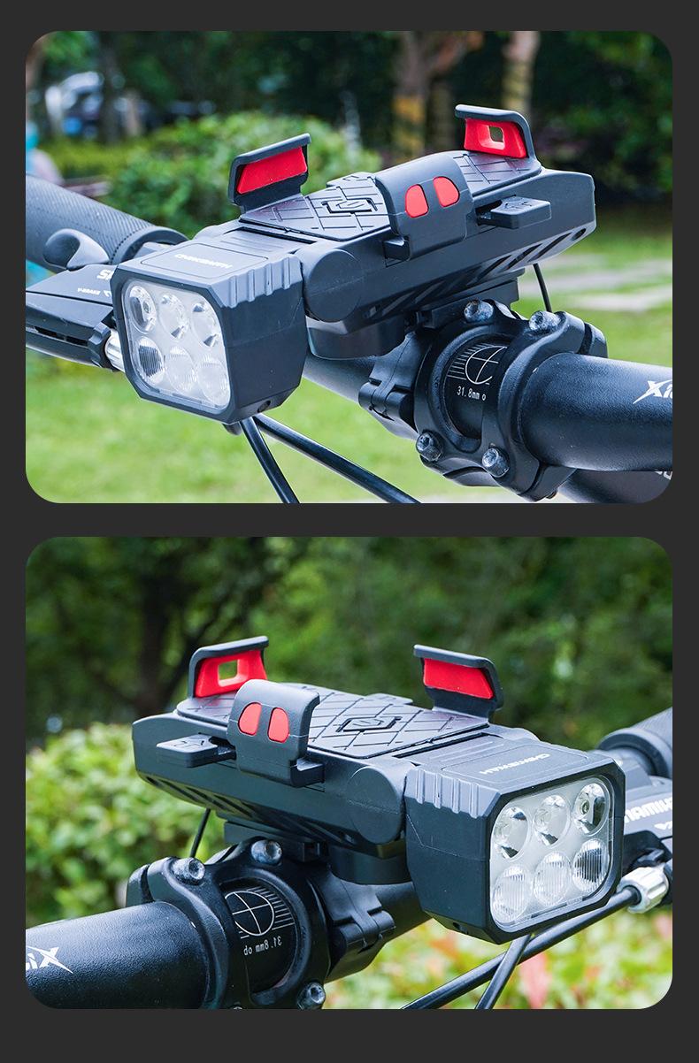 Luz de Bicicleta Nueva Cuatro en Uno Faro Luz de Bocina para Bicicleta de Montaña Soporte para Teléfono Móvil Banco de Energía Iluminación Equipo para Ciclismo