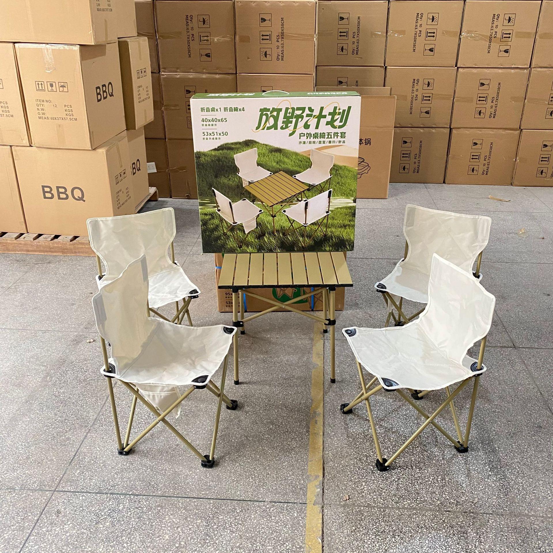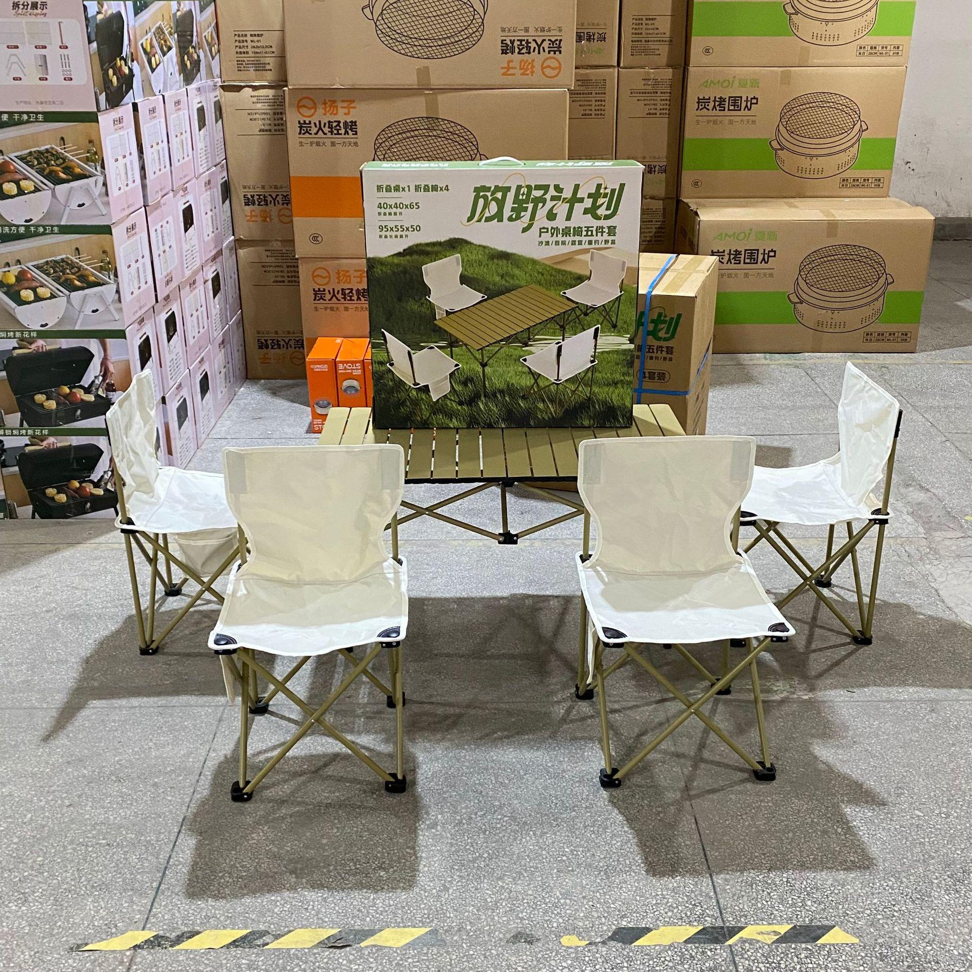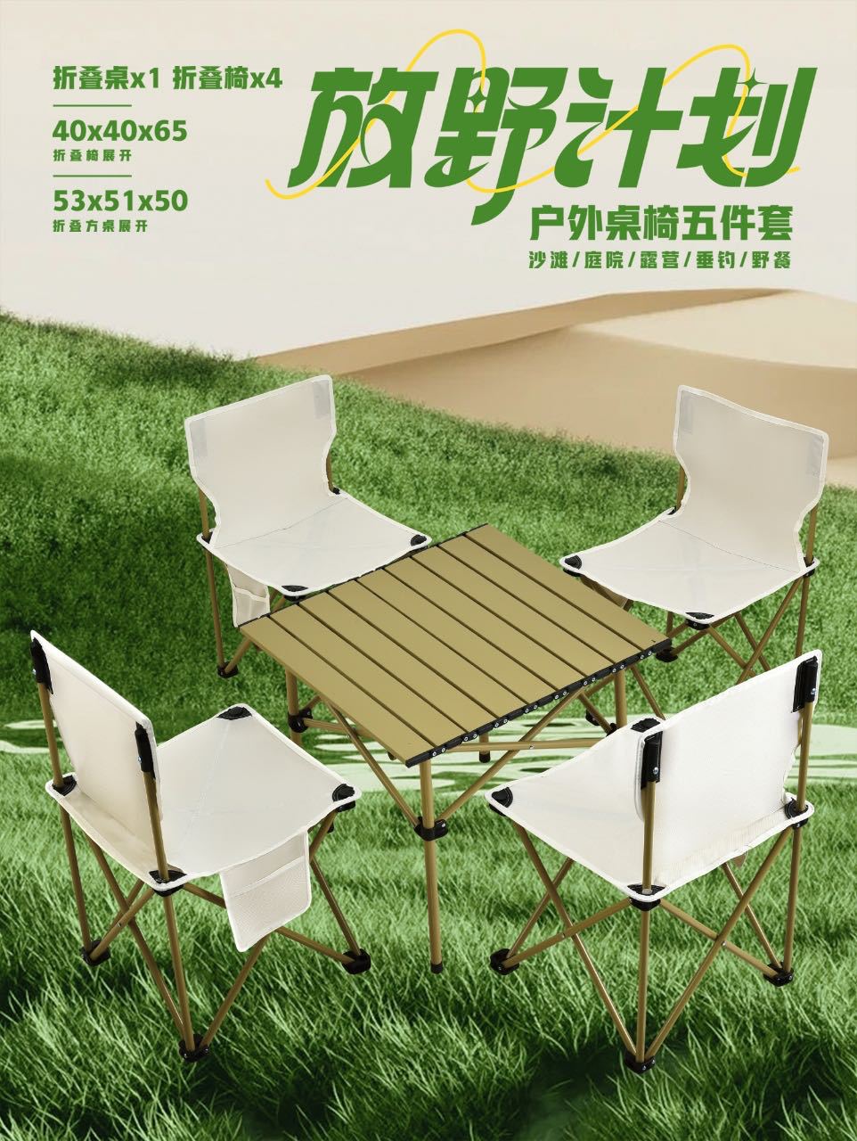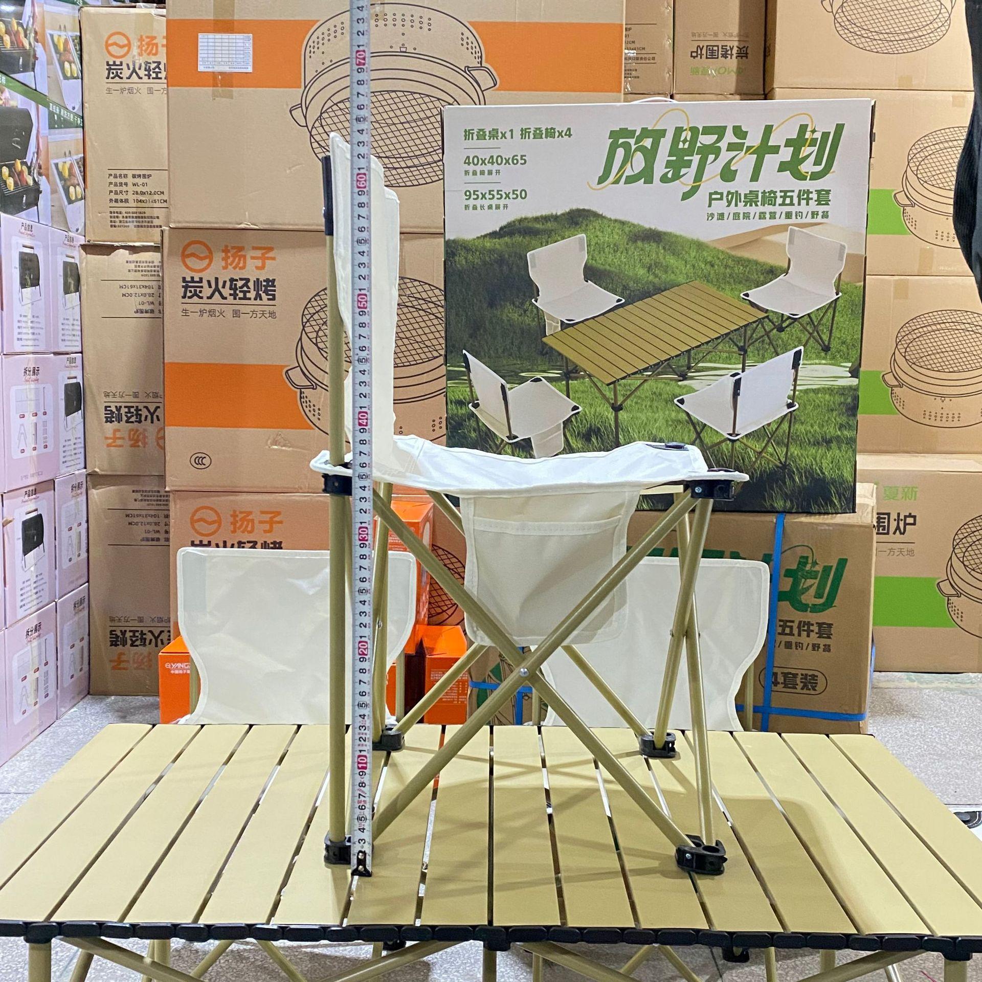 Beige long table + [extra-large chairs * 4] with free storage bag, Beige square table + 4 chairs