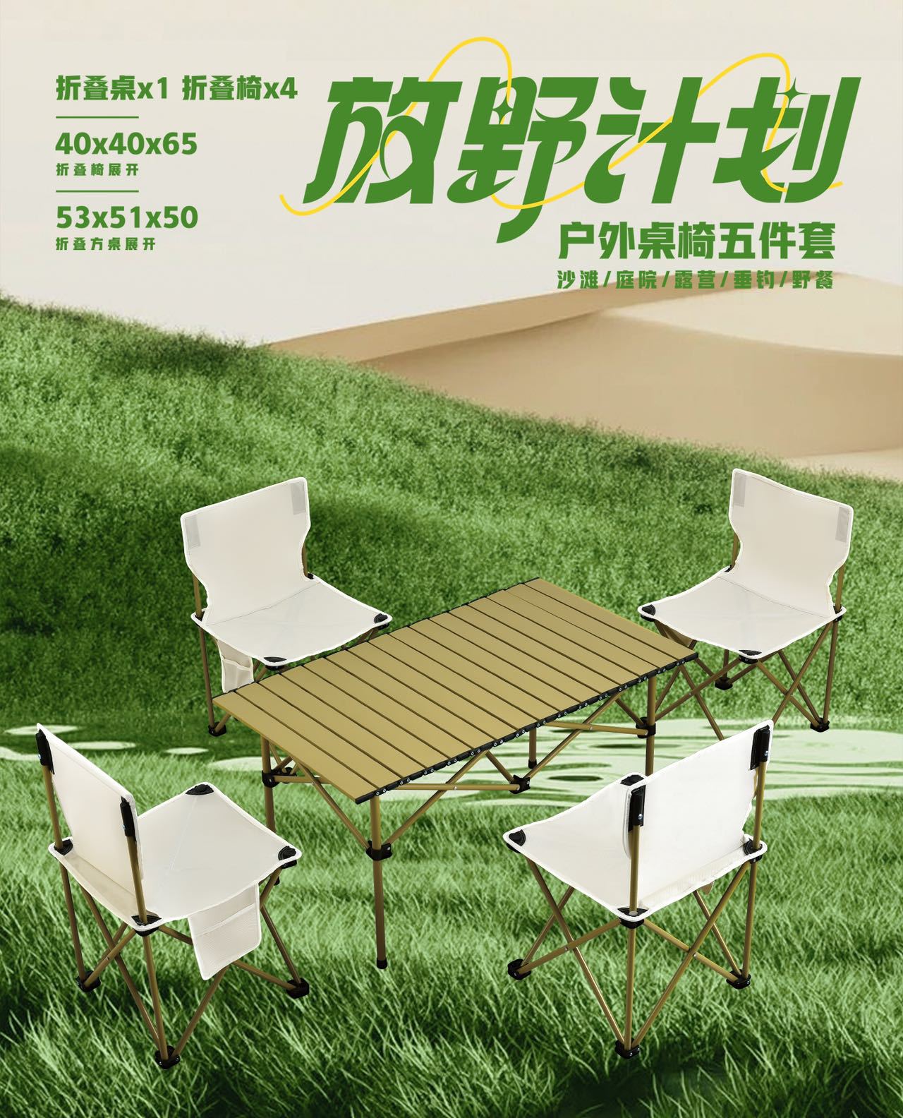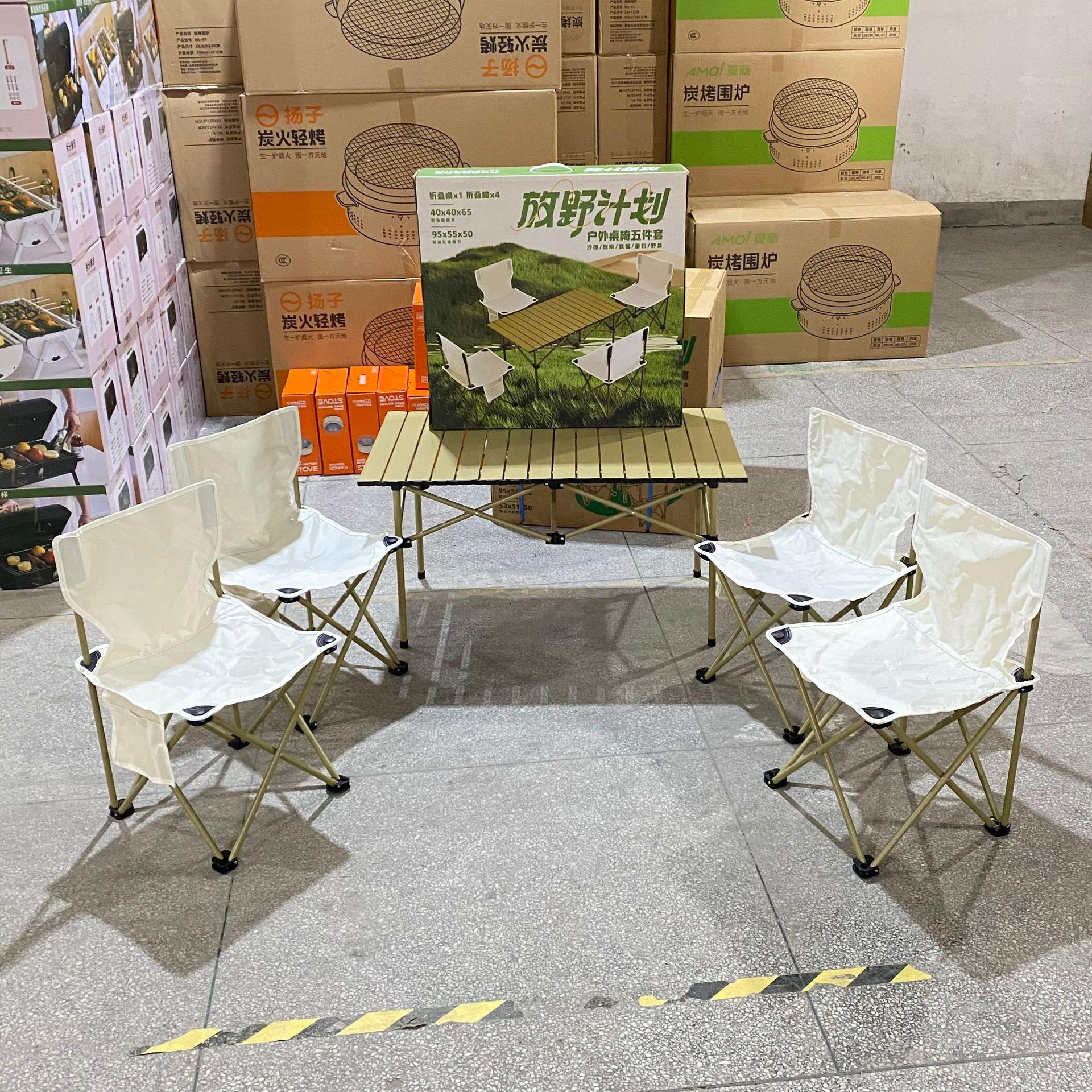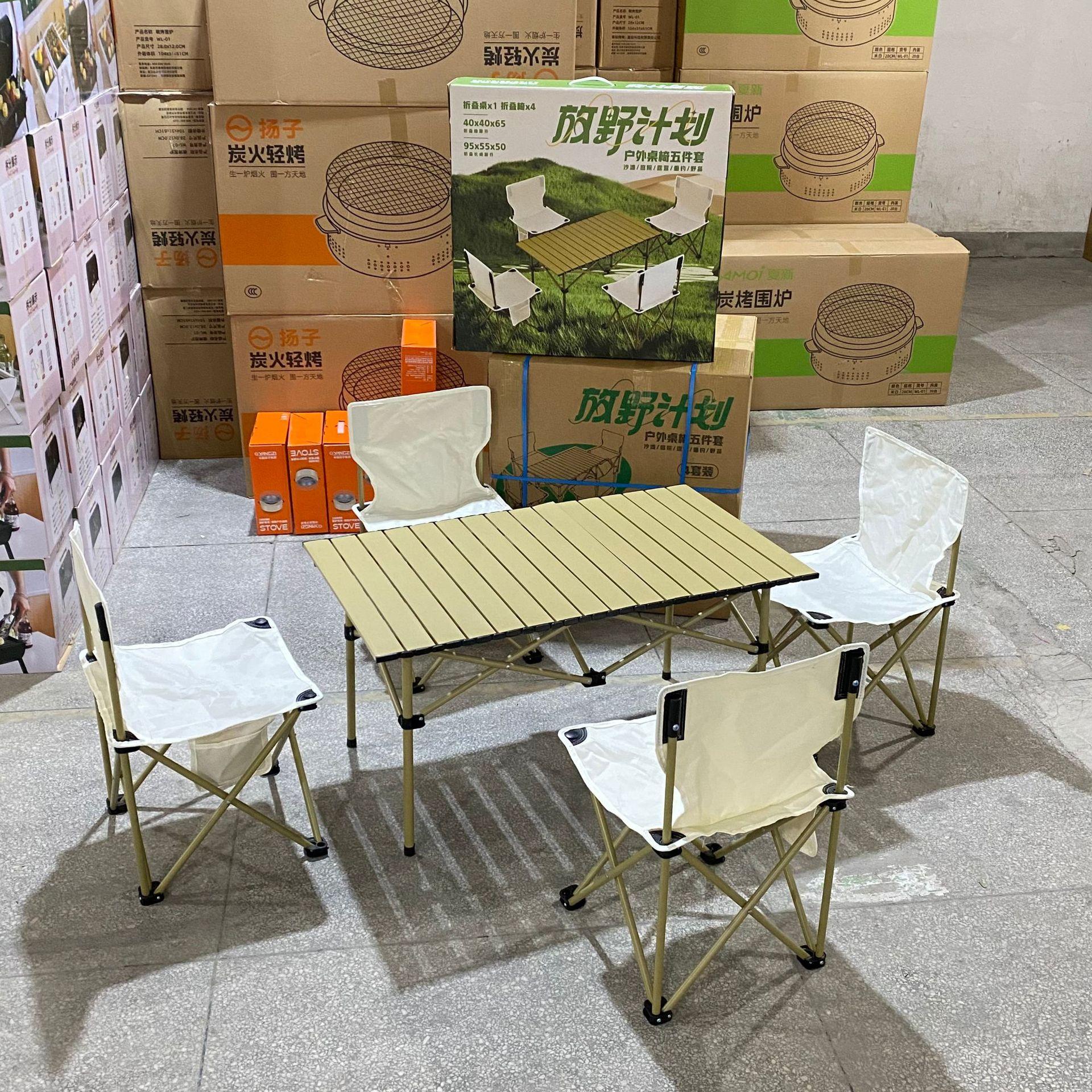 Beige long table + [extra-large chairs * 4] with free storage bag, Beige square table + 4 chairs