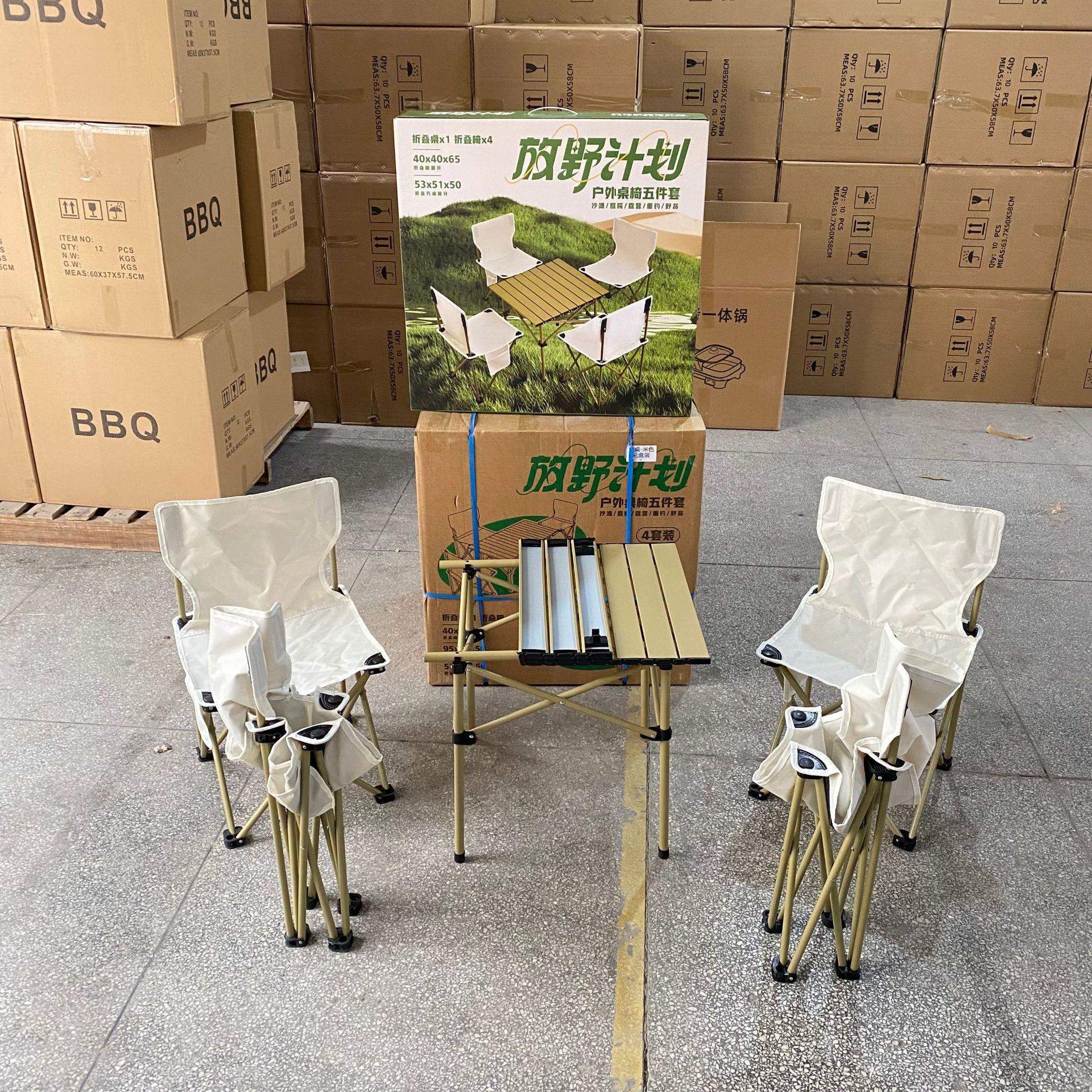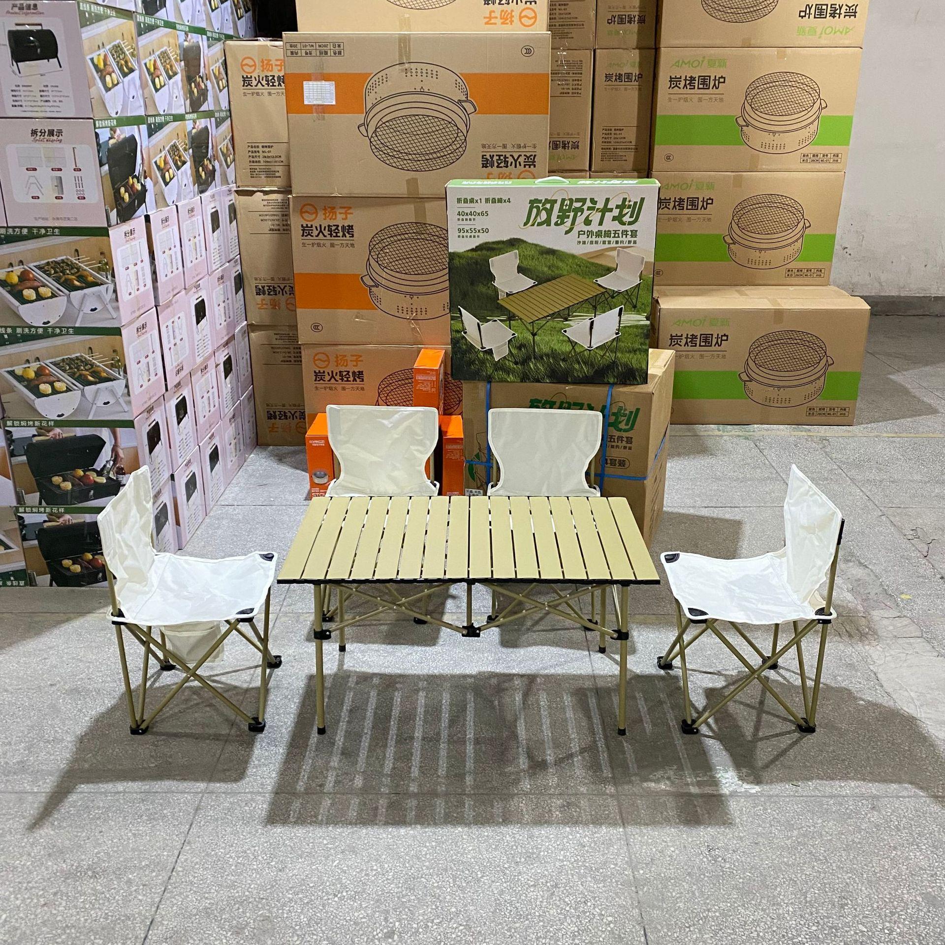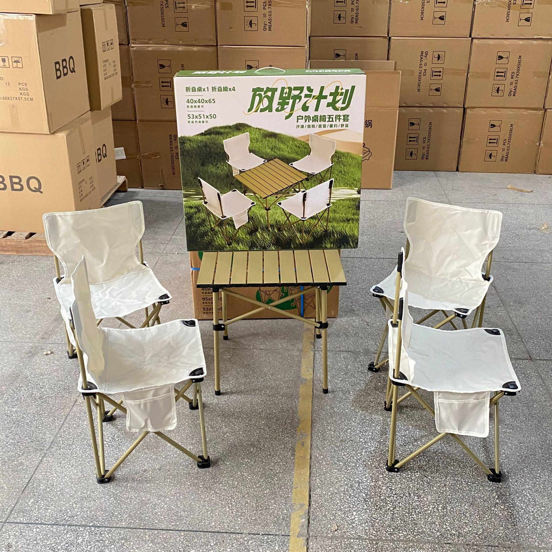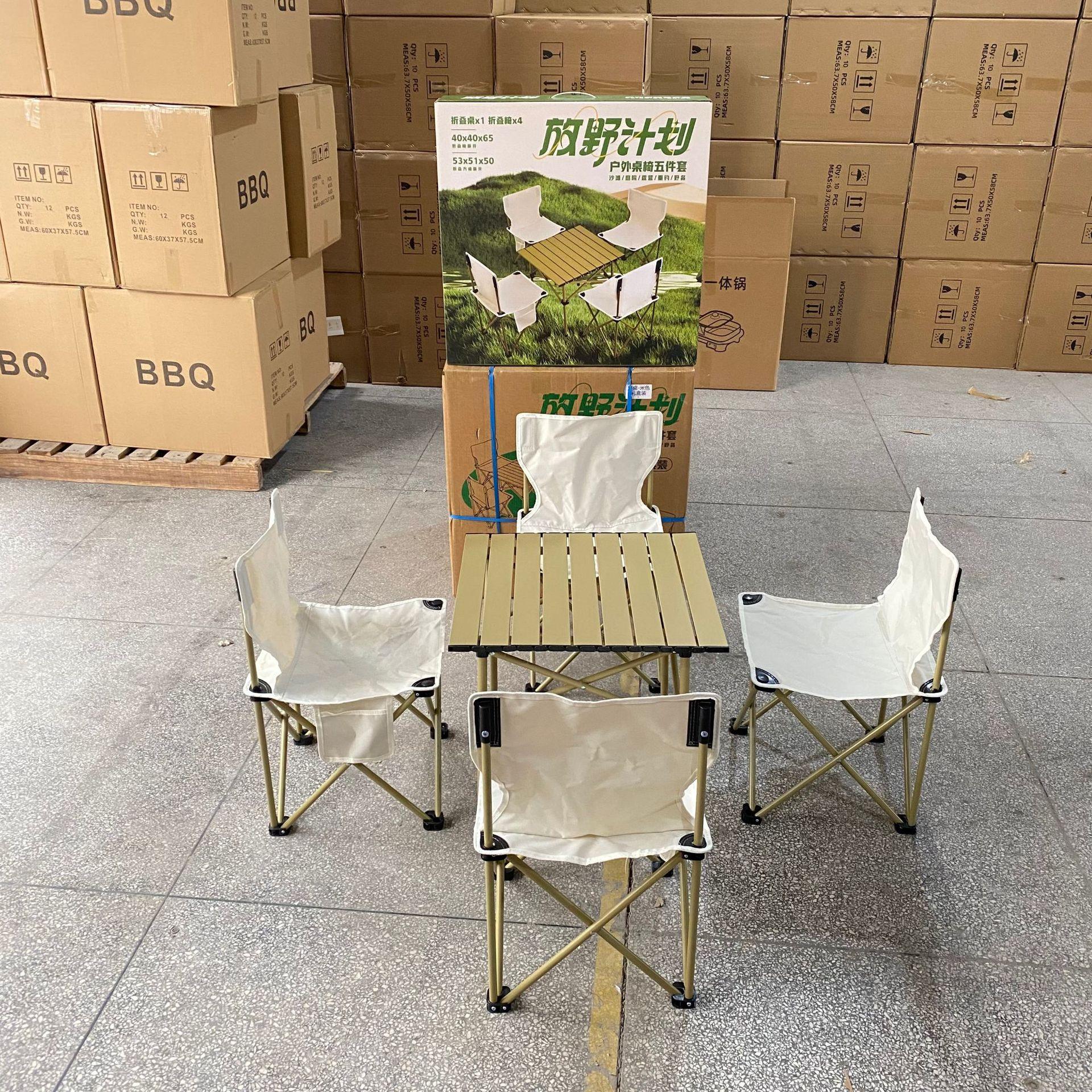 Beige long table + [extra-large chairs * 4] with free storage bag, Beige square table + 4 chairs