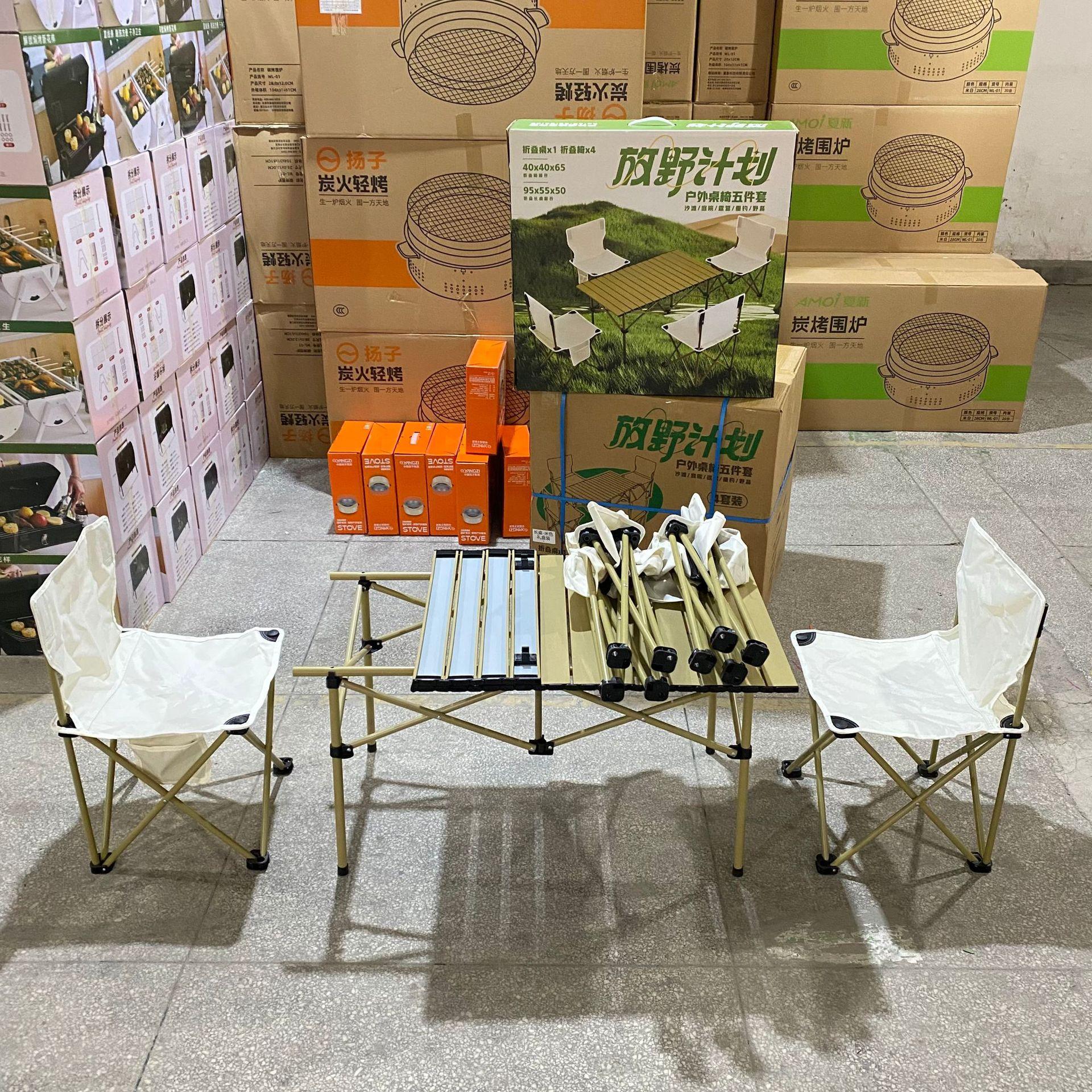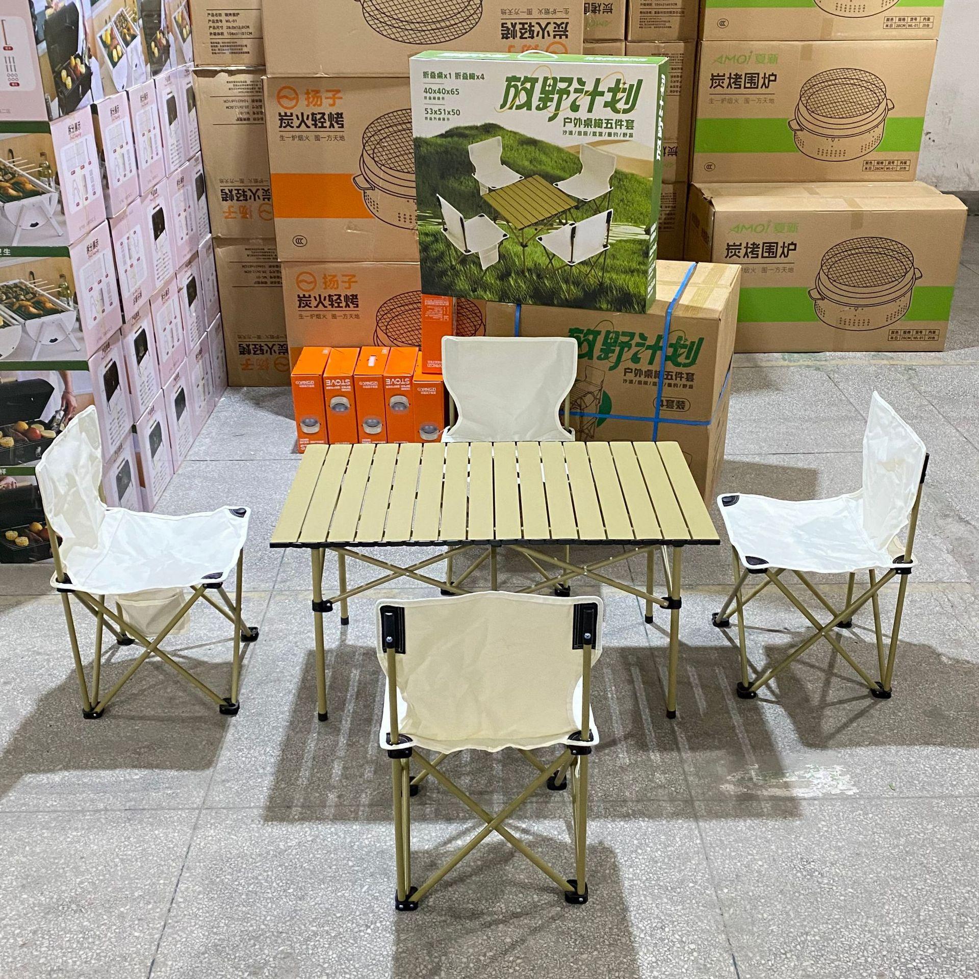 Mesa Plegable para Exterior Mesa Portátil de Camping y Sillas Mesa Enrollable Puesto Callejero Sillas de Picnic Set de Equipo de Camping