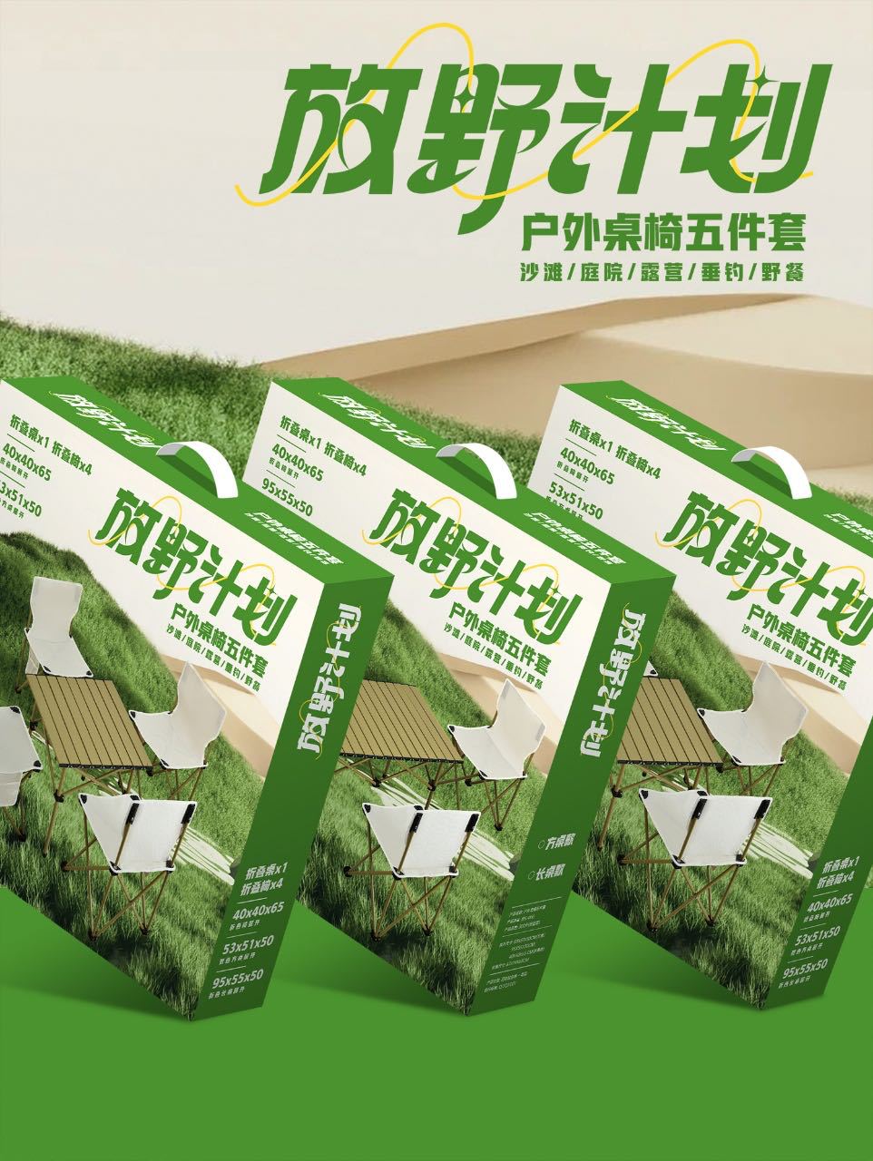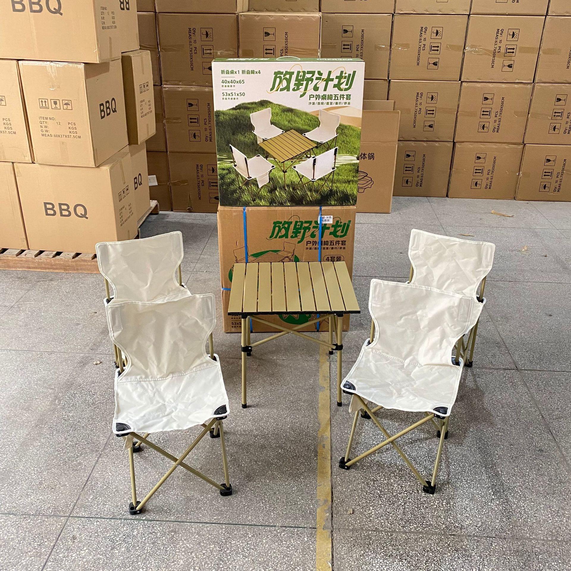 Beige long table + [extra-large chairs * 4] with free storage bag