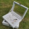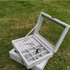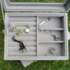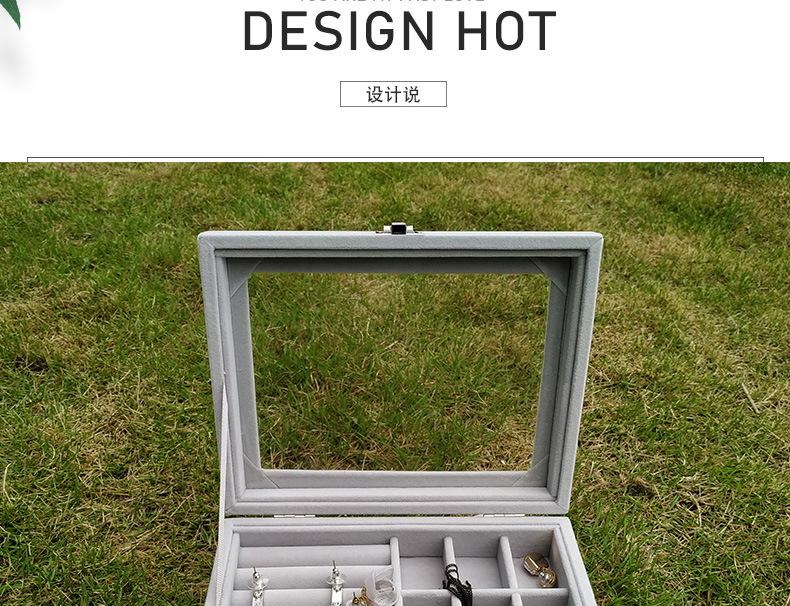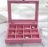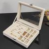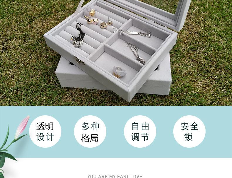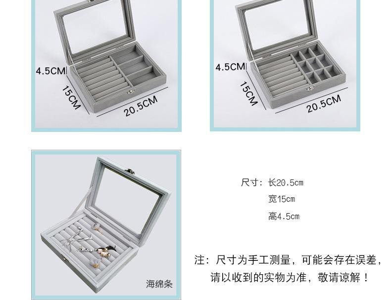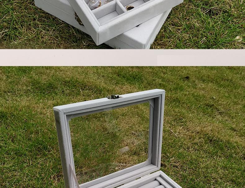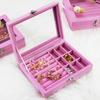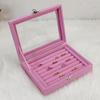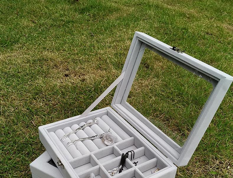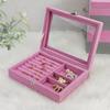 Caja de joyería portátil de terciopelo con caja de almacenamiento de joyería transparente de vidrio caja de joyería para anillos y aretes al por mayor