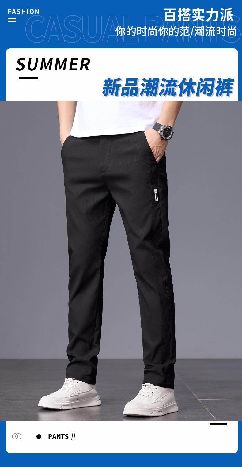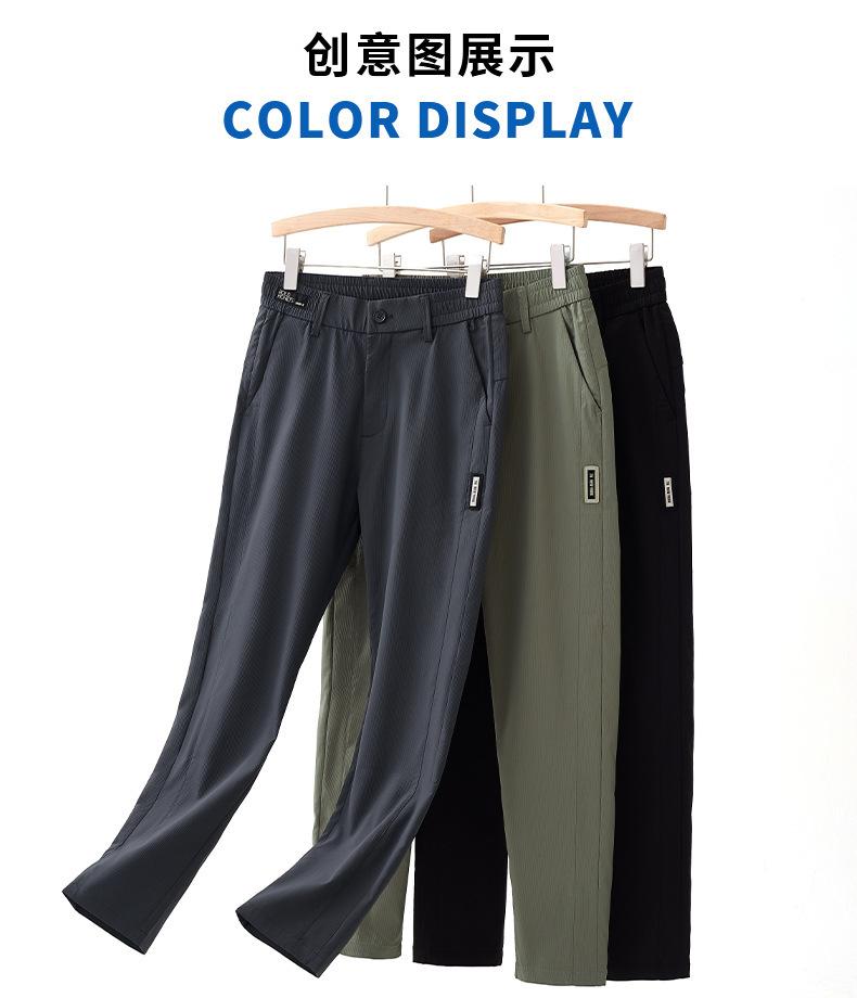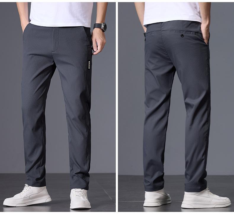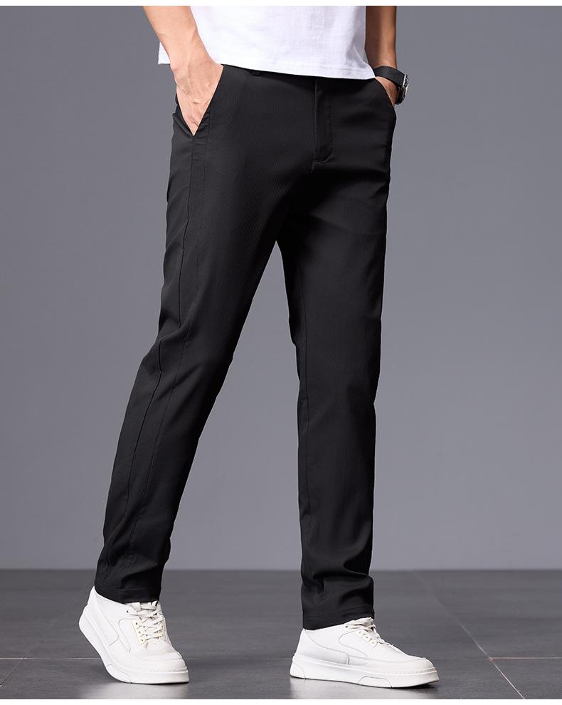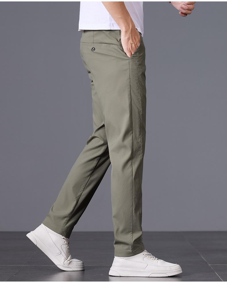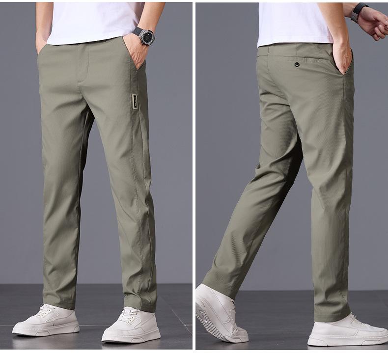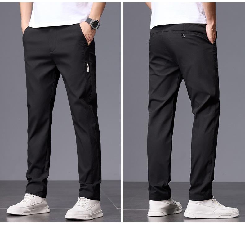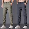 Pantalones casuales de seda de hielo con cintura elástica para hombre 2025 verano delgados rectos holgados largos nuevos pantalones de negocios de lujo ligero