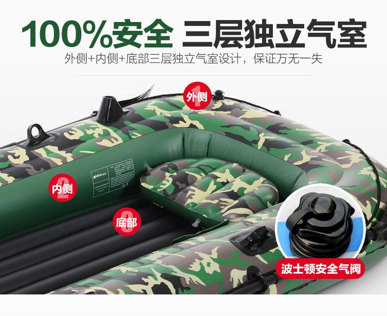 Estructura de bote para 4 personas: El bote está dividido en cuatro cámaras de aire, diseñadas. Dos en el fondo, una en la borda y una alrededor del perímetro del bote (la fuga en cualquiera de las cámaras de aire no causará que el bote se hunda, por favor use con confianza)