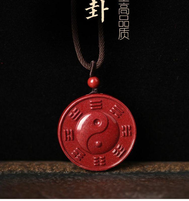 Cinnabar Yin Yang Cinco Elementos Colgante Tai Chi Bagua Cinnabar Colgante de Arena Dorada Púrpura para Hombres y Mujeres