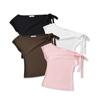 Playera Pura y Sexy de Un Hombro y Manga Corta Estilo Verano 2025 Hombro Caído Lazo Top Chic Adelgazante Camiseta Básica